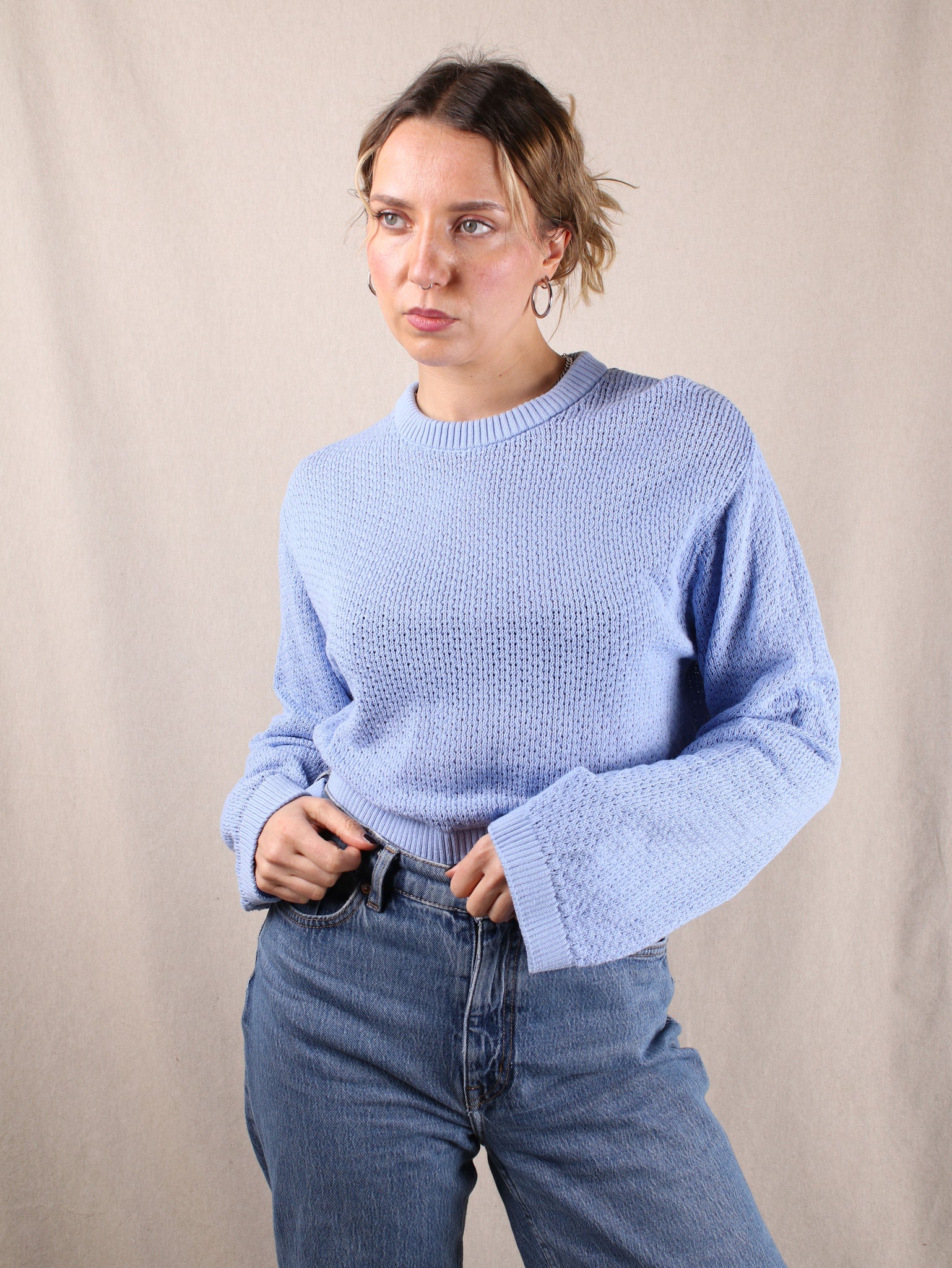 - Strick & Layering: Kuschelige Pullover und Cardigans dürfen in keinem Kleiderschrank fehlen. In unserem Secondhand Onlineshop findest du Strickwaren, die nicht nur warmhalten, sondern auch deinen Stil unterstreichen – von grobem Strick bis hin zu leichten Feinstrick-Styles, die du in den echten Looks unserer Models sehen kannst.