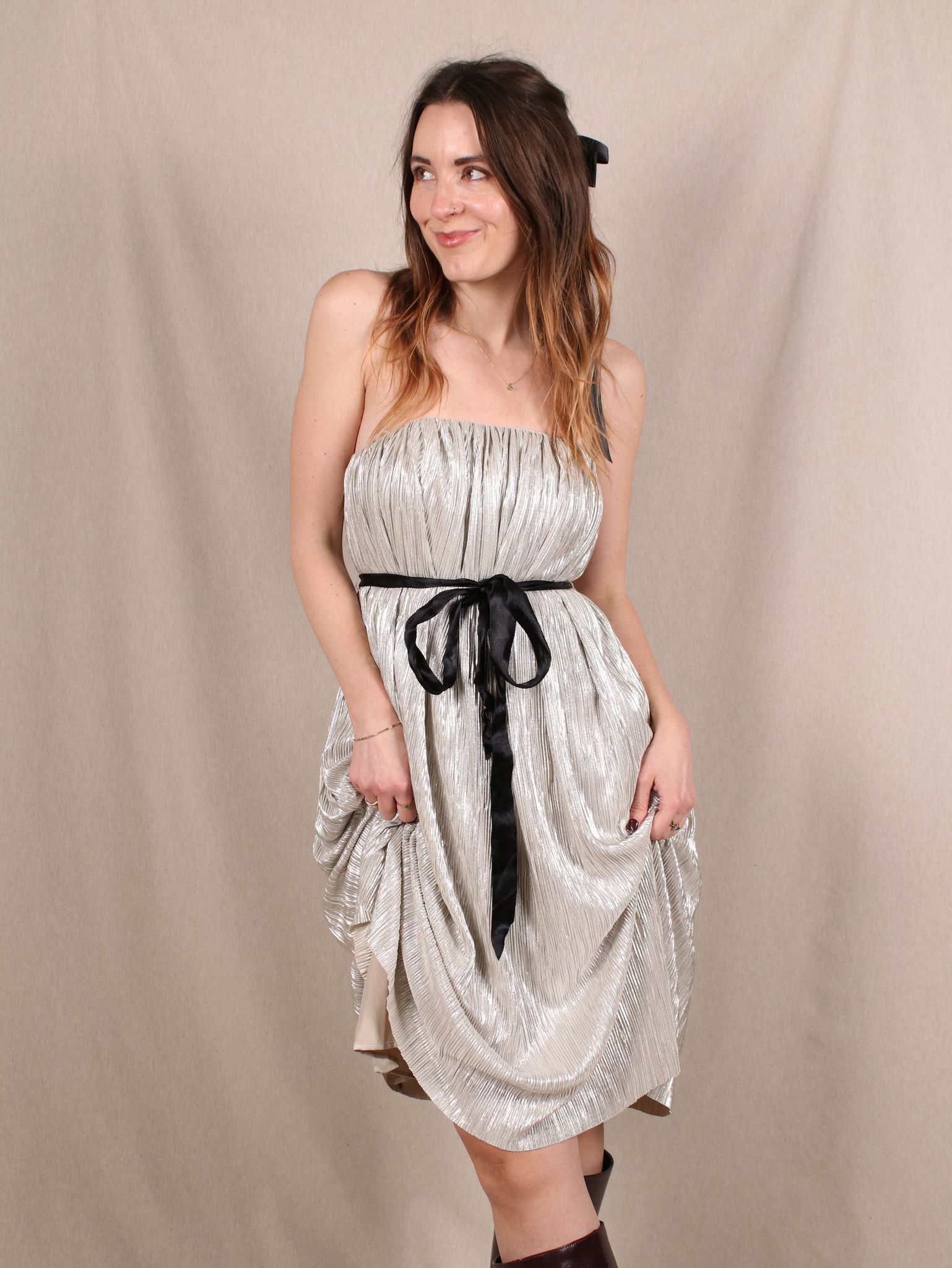 Nahaufnahme eines frisch gereinigten Secondhand-Blusenkleids von Sézane, sorgfältig aufbereitet und bereit für einen nachhaltigen Kleiderschrank