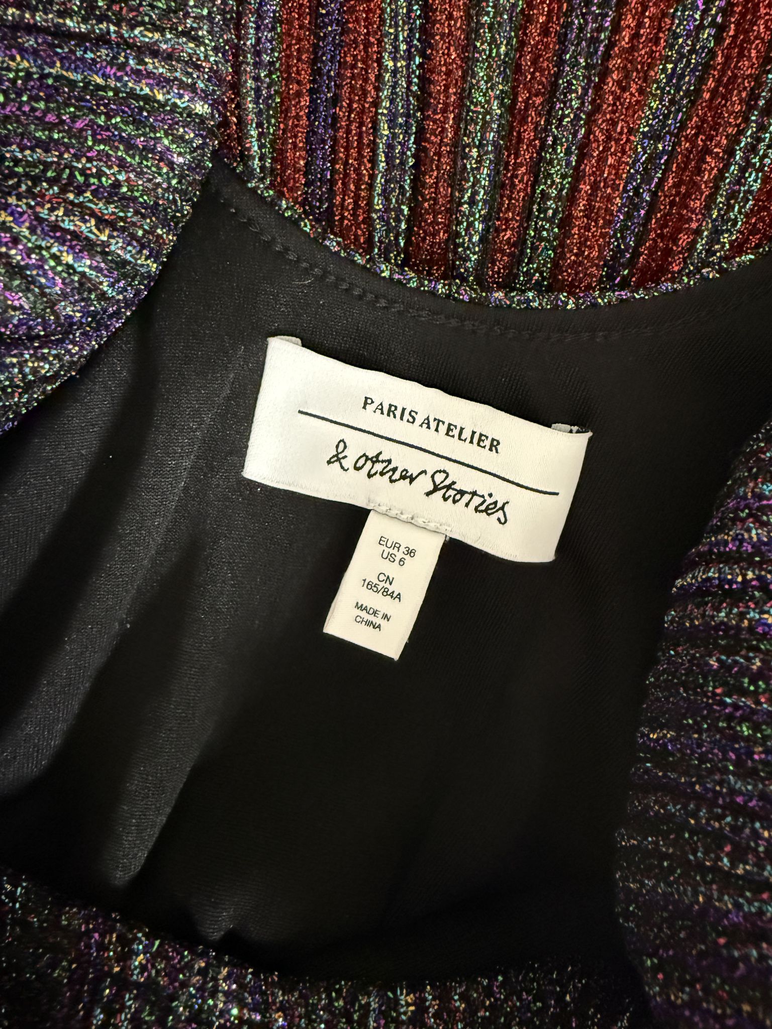 Dieses Secondhand Abendkleid von & Other Stories ist pures Partyvergnügen im Rüschenformat. Der mehrfarbige Glitzerstoff catcht jedes Licht, die taillierte Silhouette bringt Form und die gestuften Rüschen machen das Ganze zu einem echten Dancefloor Magnet. Perfekt für Xmas Nächte, an denen du einfach nur gute Laune wirbeln willst.