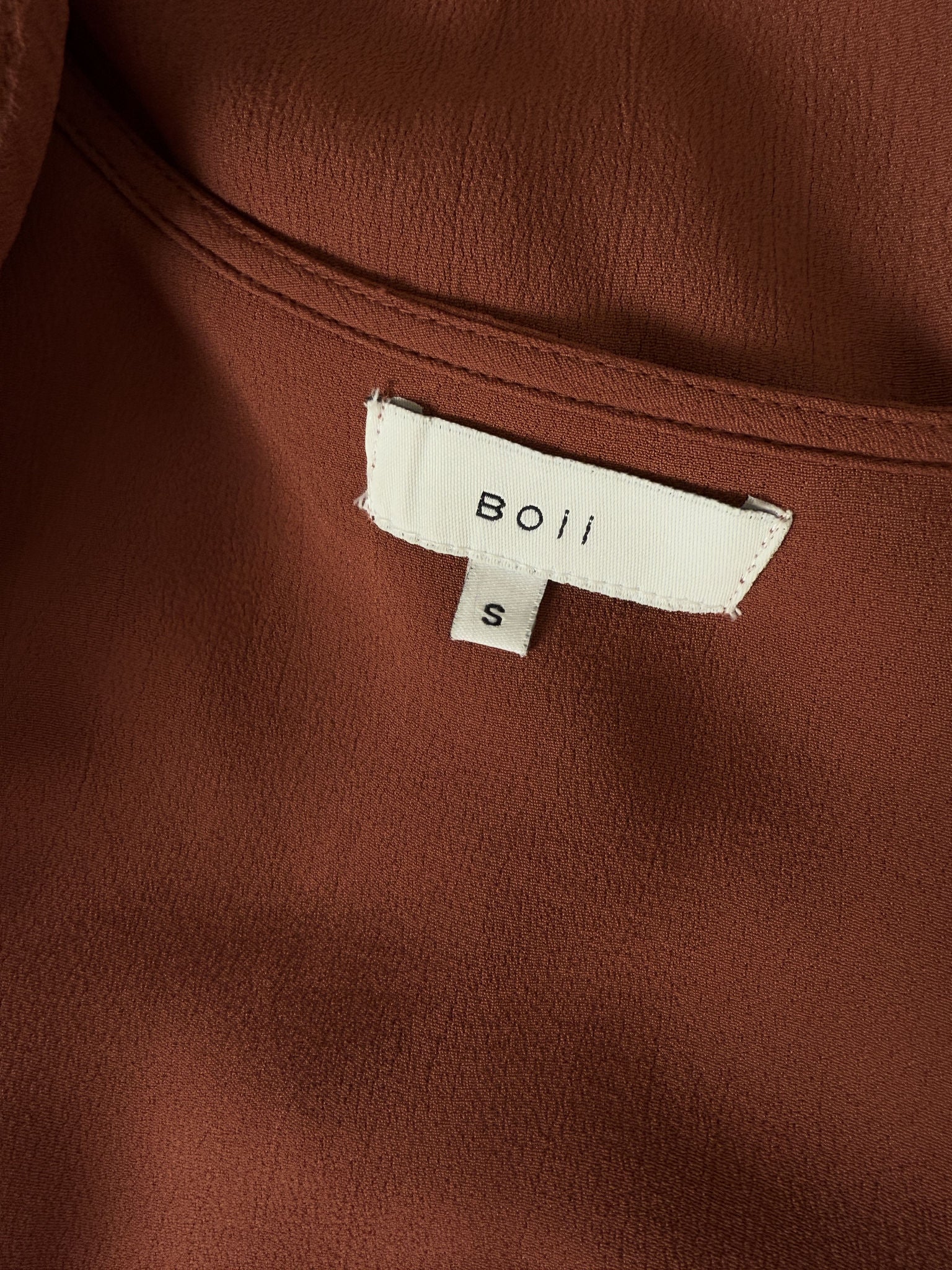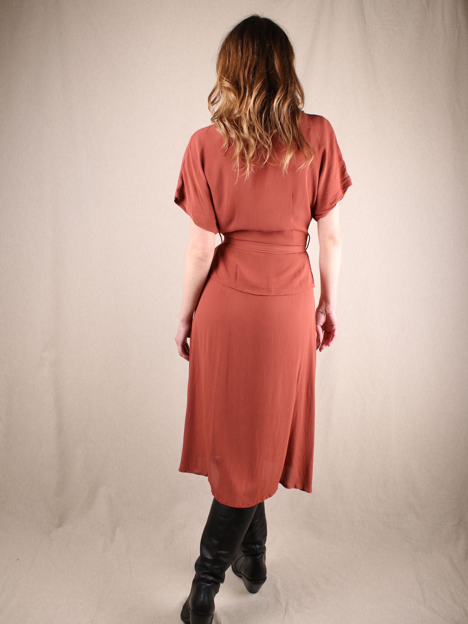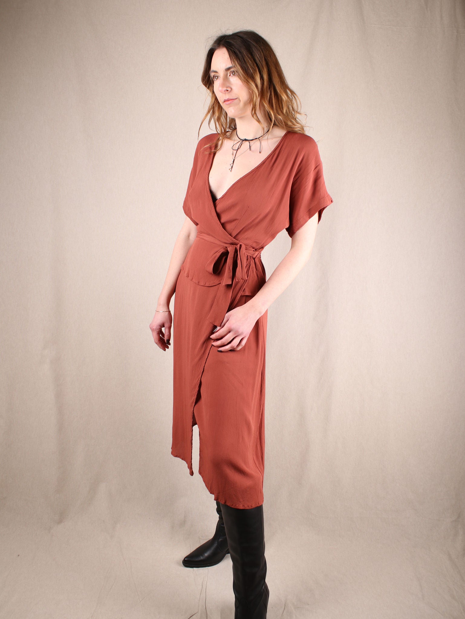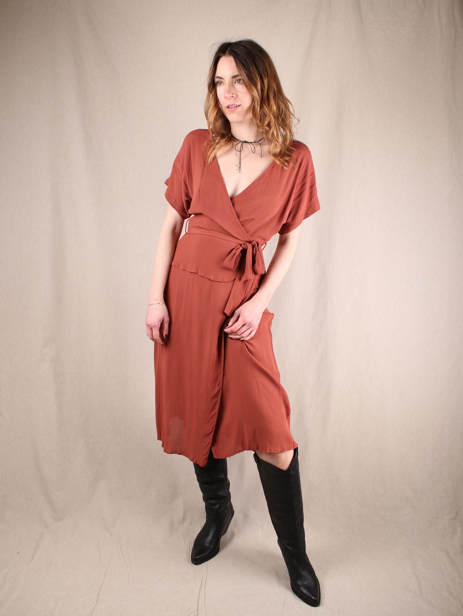 Secondhand Wickel-Midikleid von Boii Studios mit kurzen Ärmeln und Volants