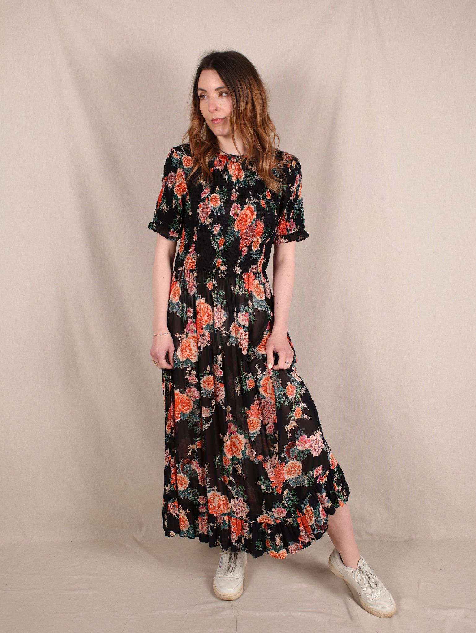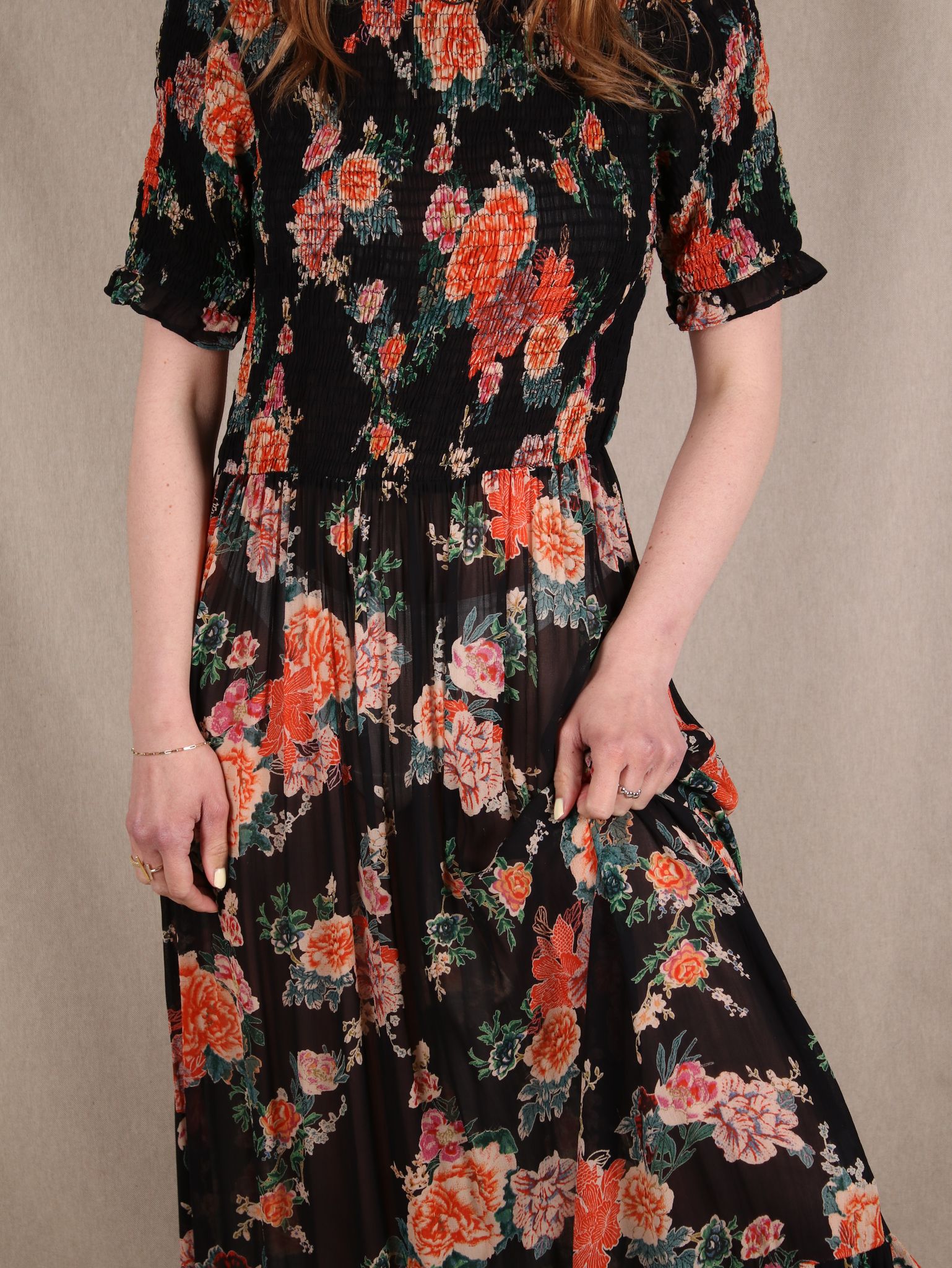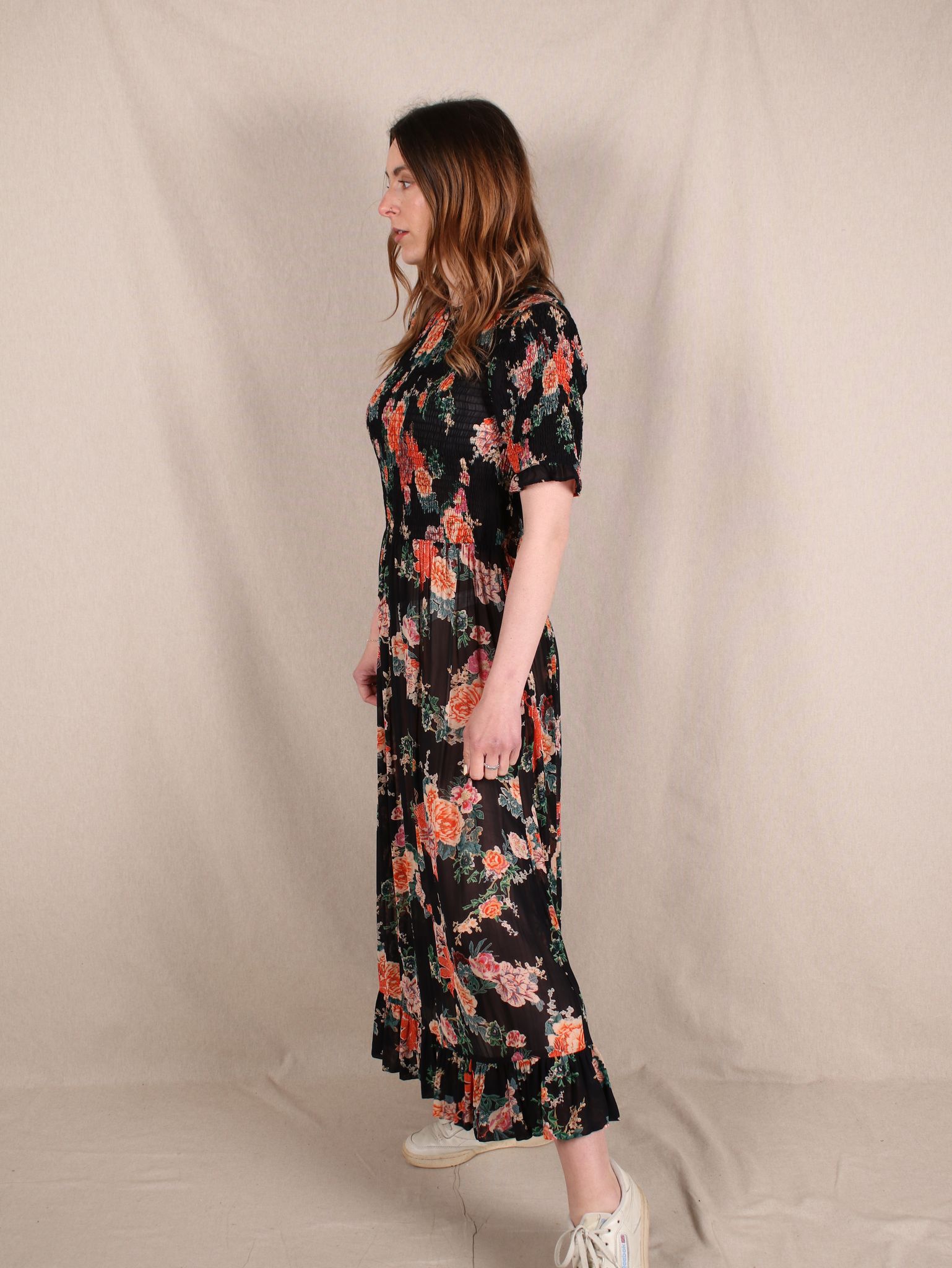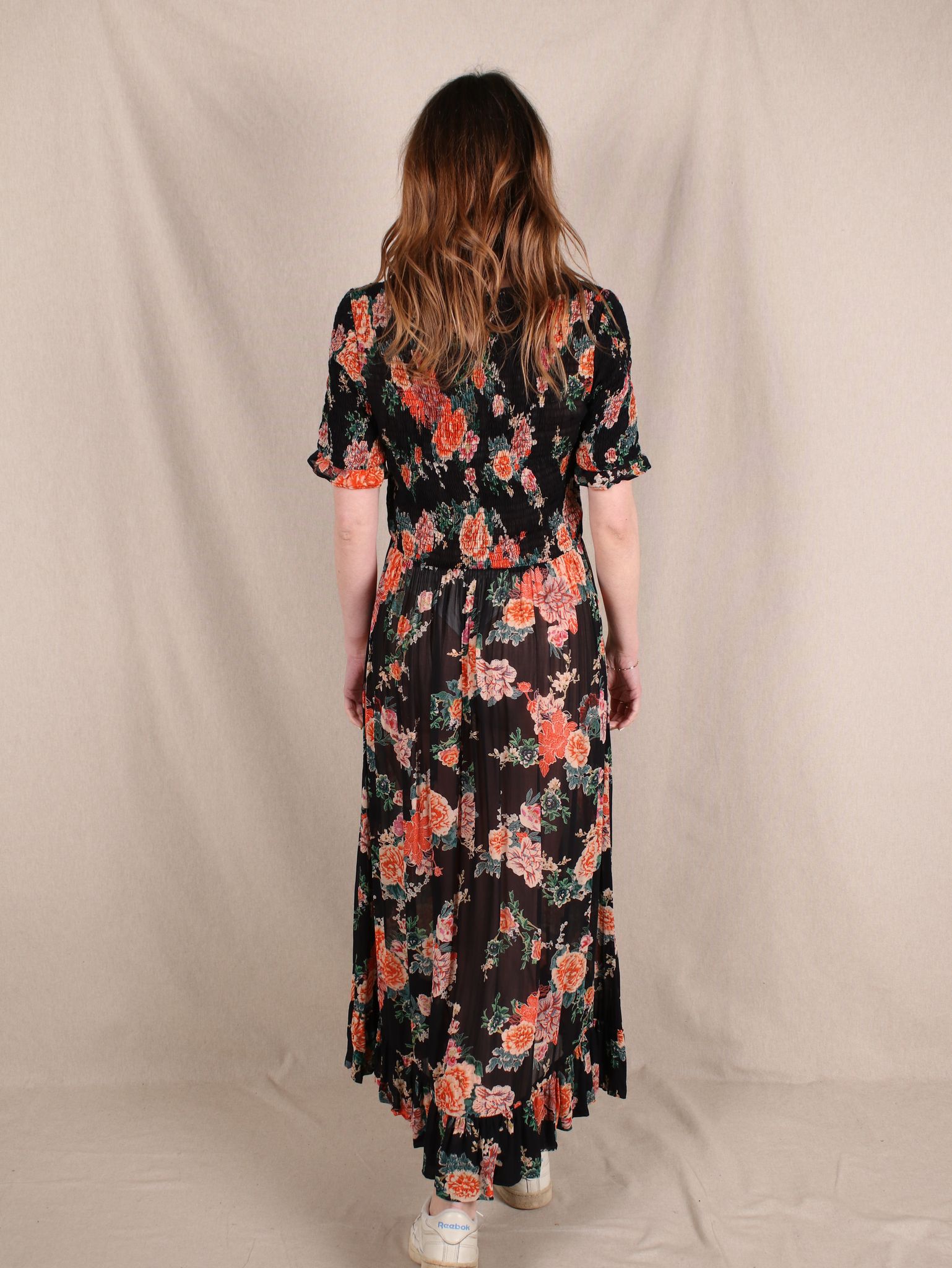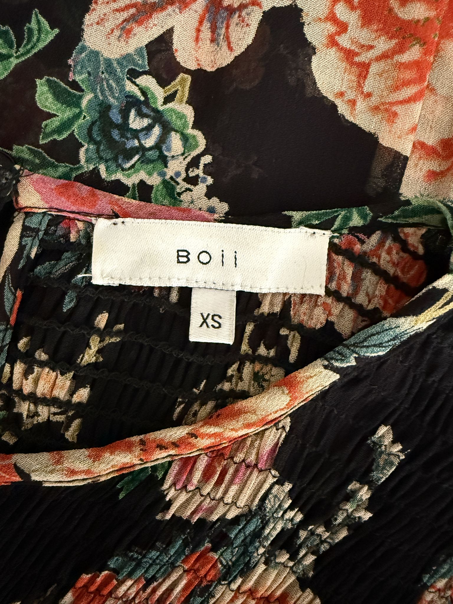 Dieses florale Kleid von Boii Studios ist wie gemacht für deine romantischen Outings. Mit zarten Rüschen, einem gesmokten Oberteil und fließendem Crêpe-Stoff tanzt es zwischen Vintage-Vibe und Everyday-Crush. Die Farben knallen - und du strahlst. Ob Gartenfest oder Stadtbummel, this one’s got your back (und Style!)