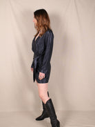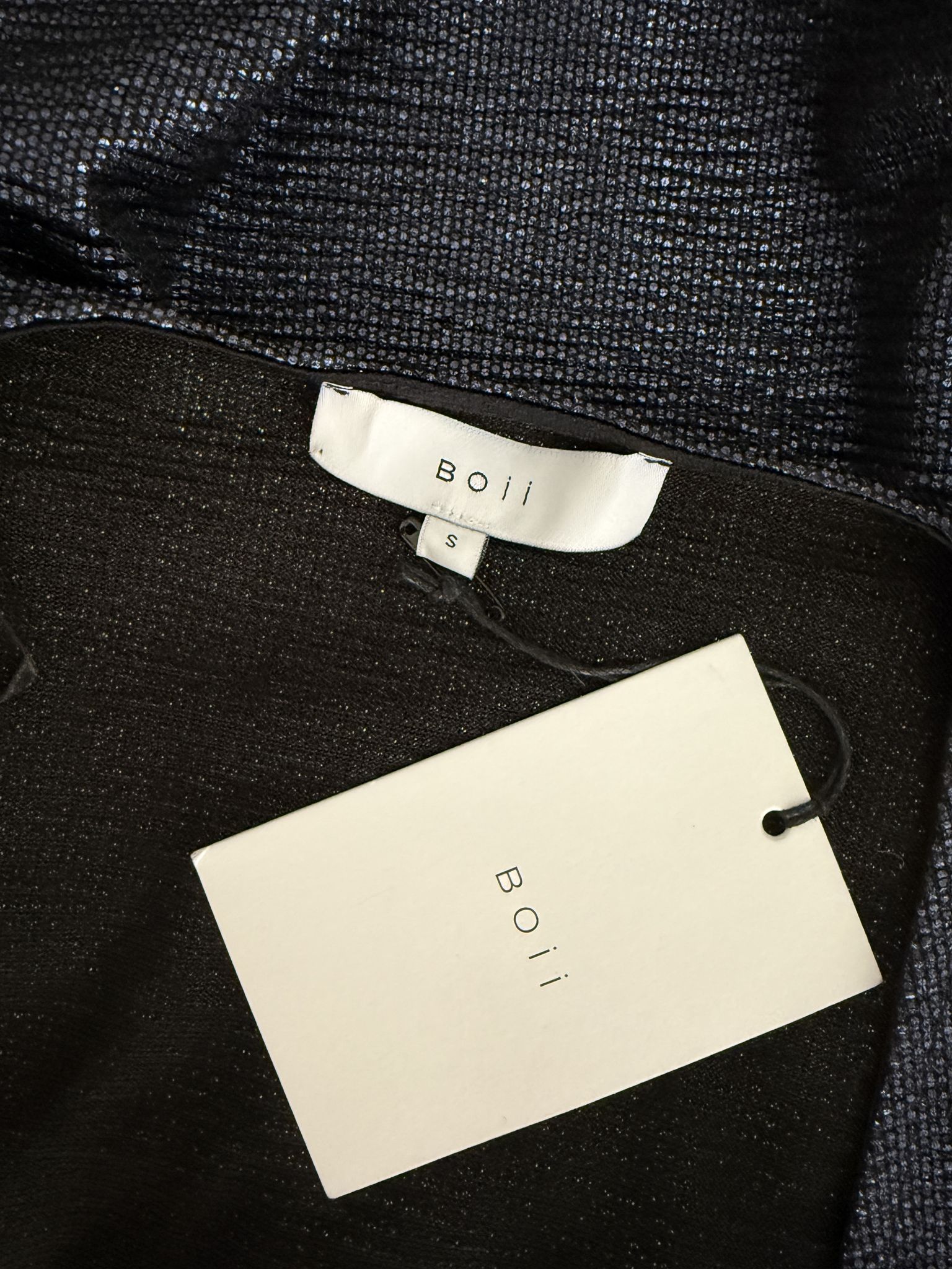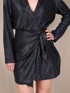 Mit diesem glitzernden Wickelkleid von Boii Studios wird jeder Auftritt zum Highlight. Das tiefdunkle Blau schimmert bei jeder Bewegung und sorgt für eine elegante, aber auffällige Note - perfekt für Partynächte oder festliche Anlässe. Der taillierte Schnitt und das raffinierte Bindetail machen dieses Kleid zu einem echten Favoriten für alle, die Glanz lieben.