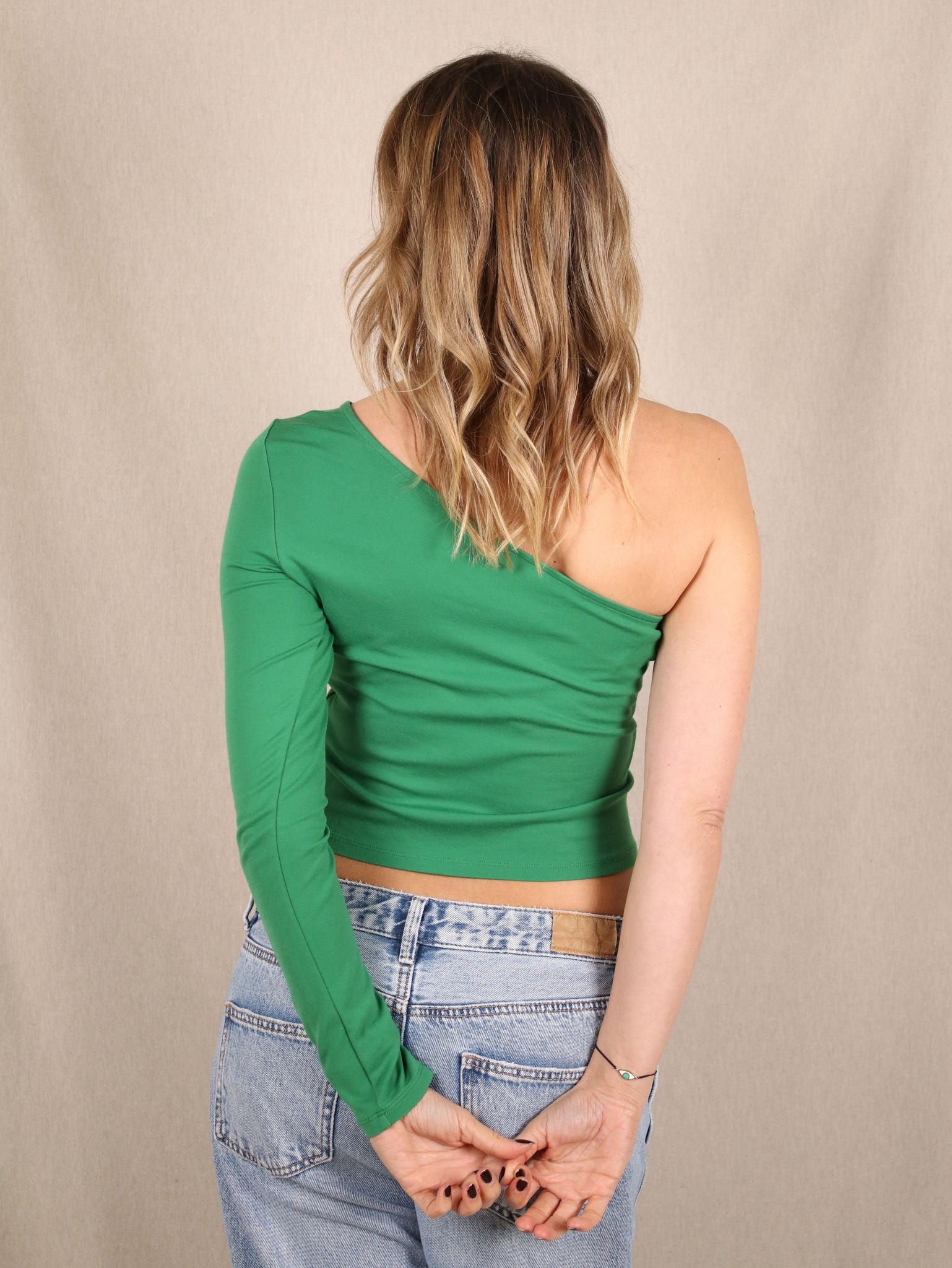Dieses & Other Stories One-Shoulder-Longsleeve in kräftigem Grün setzt ein Statement. Der figurbetonte Schnitt und das elastische Material sorgen für eine perfekte Mischung aus Komfort und Eleganz. Perfekt zu High-Waist-Jeans oder als Hingucker unter einem Blazer.