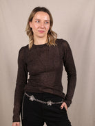 Dieser Secondhand Pullover von & Other Stories lässt dich in einem warmen Bronze-Schimmer aufleuchten, als würdest du in einer eleganten Holiday-Montage durchs Bild gleiten. Der eng anliegende Strick formt eine schlanke Silhouette, während das feine transparente Detail am Dekolleté einen dezenten Fashion-Moment setzt. Ein Piece für alle, die an Xmas-Abenden subtile Extravaganz lieben.
