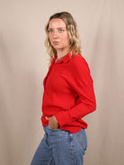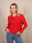 Diese rote Bluse von COS ist ein echter Alltagsheld. Durch den feinen Piqué-Stoff bekommt sie Struktur, der lockere Schnitt sorgt für Komfort. Als Secondhand-Piece ist sie nicht nur stilvoll, sondern auch nachhaltig – perfekt für alle, die mit wenig Aufwand viel Wirkung erzielen wollen.