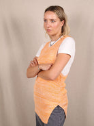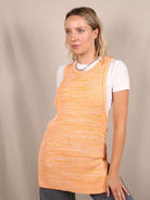 Strukturiertes Feinstrick-Top von COS in sattem Orange-Melange. Der lange, gerade Schnitt mit seitlichen Schlitzen greift subtile 70s-Vibes auf, bleibt dabei aber minimalistisch – ganz im Sinne des skandinavischen Designs. Vielseitig tragbar: solo, über T-Shirts oder unter Blazern. Hergestellt aus weicher Viskose, secondhand in Top-Zustand.