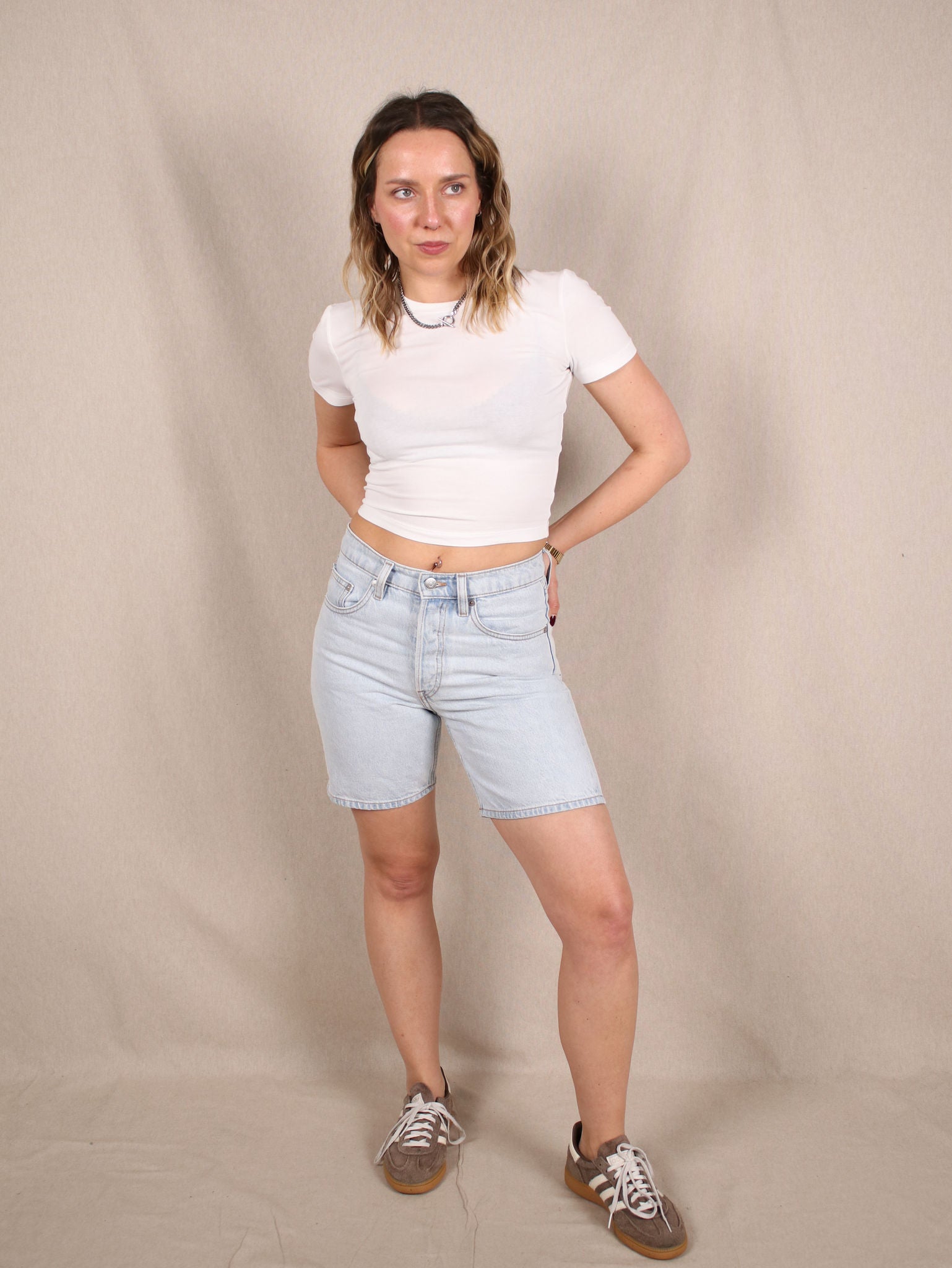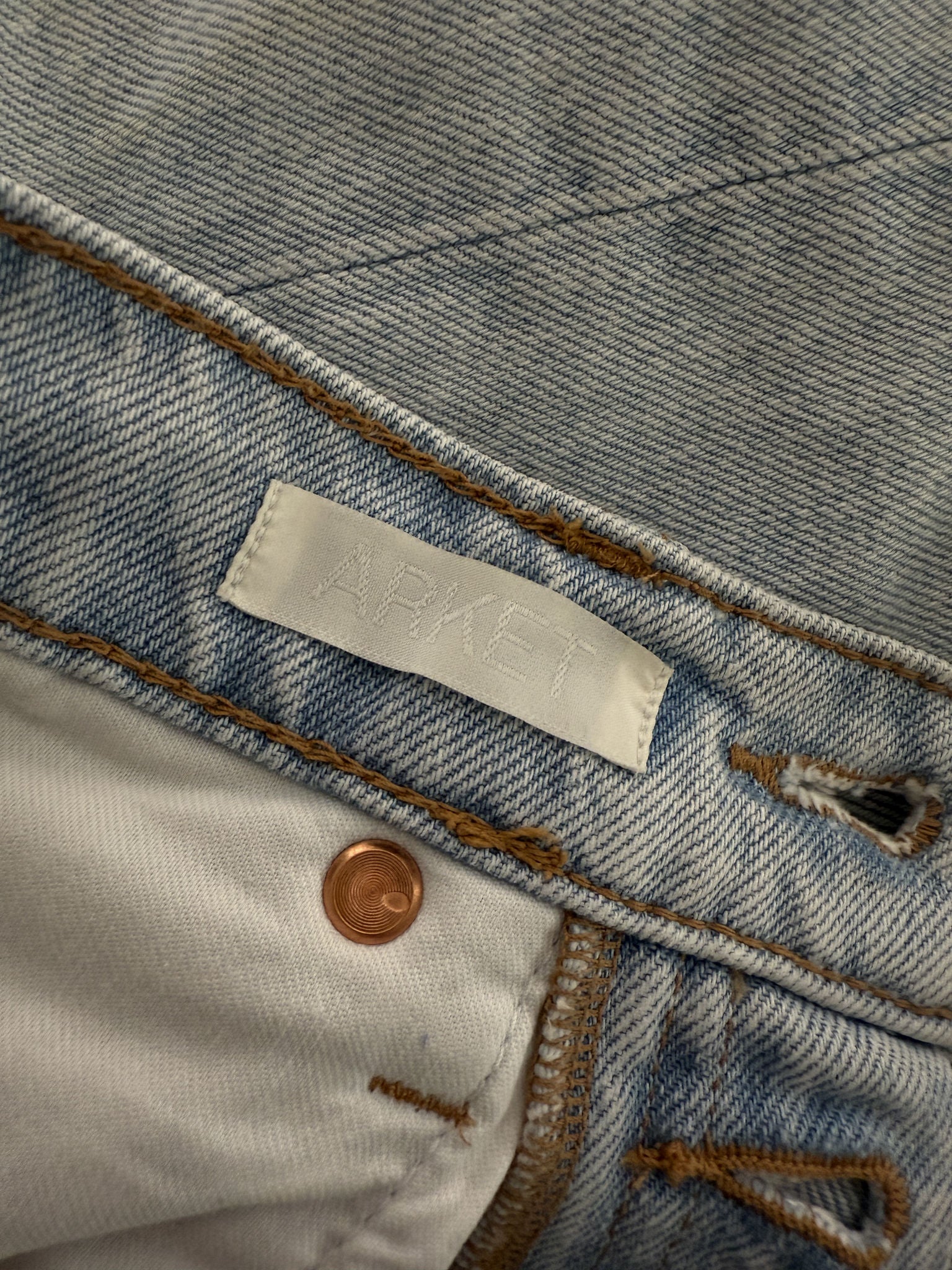 Diese Secondhand Arket Denim Shorts sind minimalistisch, zeitlos und ultra bequem. 100 % Baumwolle, ein klassischer Schnitt und ein hoher Bund sorgen für eine schmeichelhafte Passform. Perfekt für einen lässigen, aber stilvollen Sommer-Look!