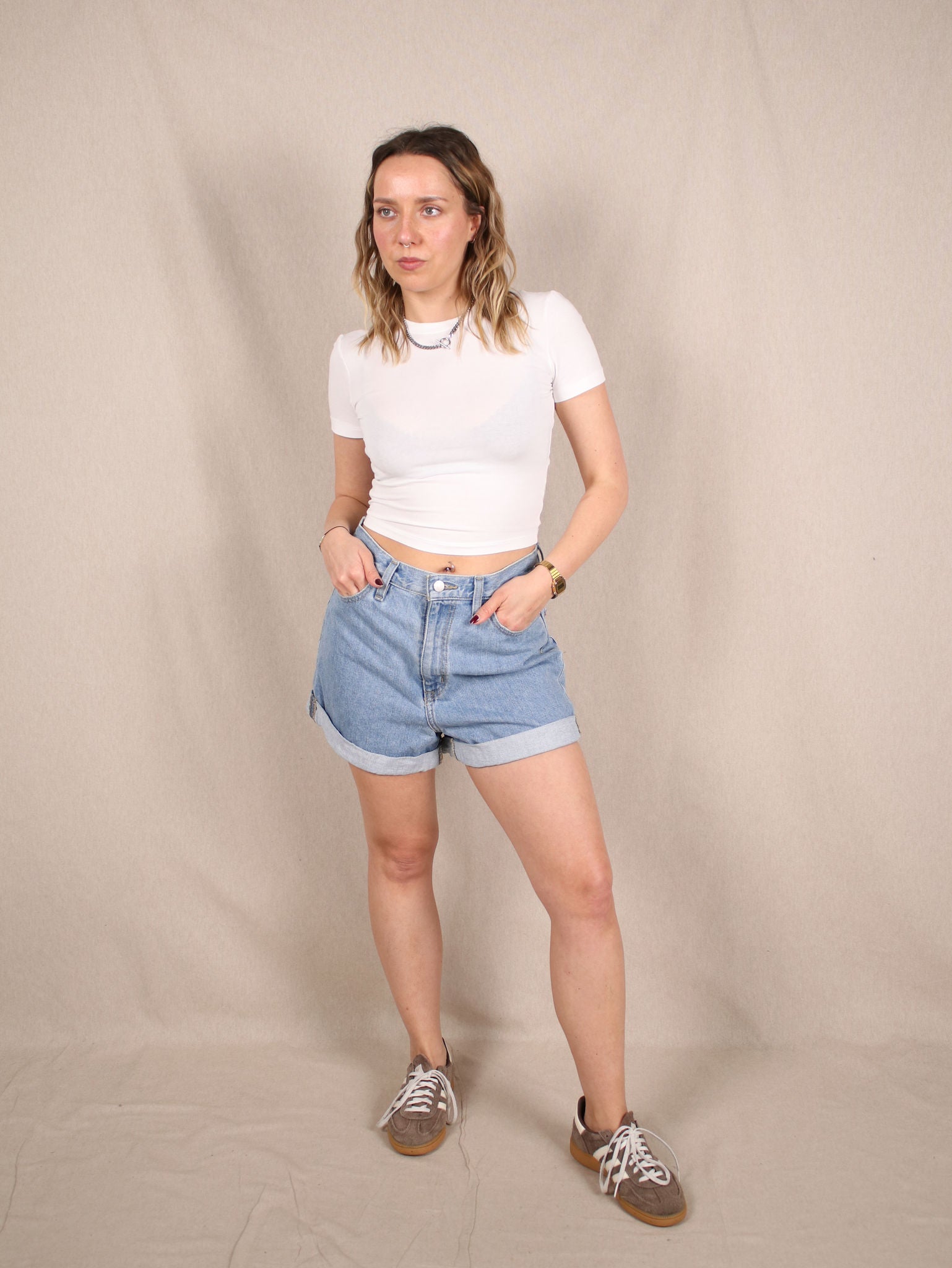 Diese Secondhand BDG Mom High Rise Shorts sind der perfekte Mix aus Retro und modernem Style. Der hohe Bund sorgt für eine schmeichelhafte Passform, während der lockere Schnitt und die umgeschlagenen Säume lässige Vibes versprühen. Ein Must-Have für alle Denim-Lover!
