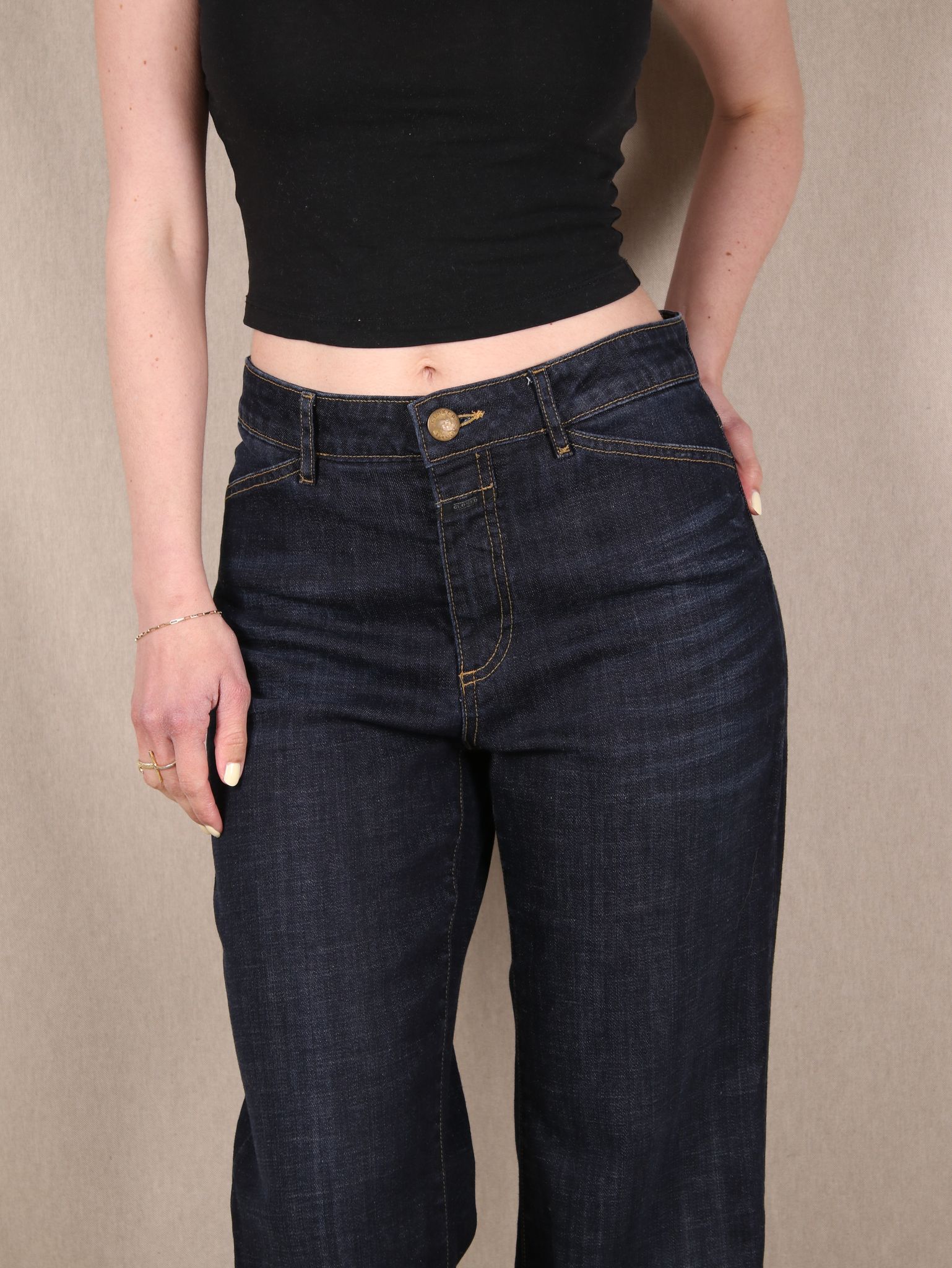 Diese tiefdunkle Flared Jeans von Closed bringt nicht nur deine Beine zur Geltung, sondern auch dein Stil-Game aufs nächste Level. Der schwere Denim in edlem Indigo wirkt wie maßgeschneidert, während der breite Saum für einen subtilen 70s-Vibe sorgt - minimalistisch, aber mit maximalem Effekt.