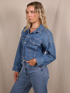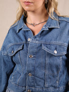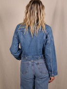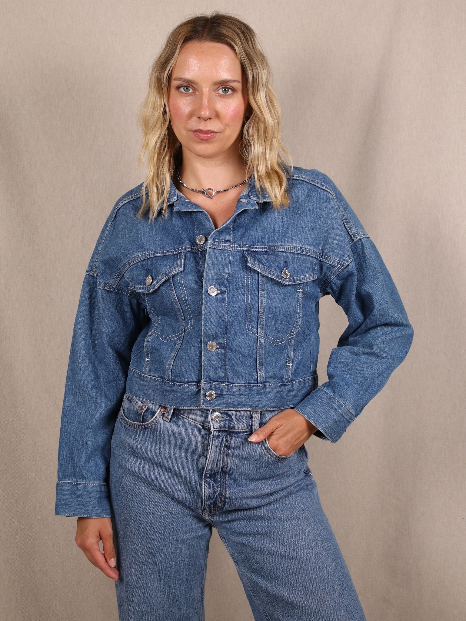Diese cropped Jeansjacke von H&M ist der perfekte Begleiter für den Übergang in die kühlere Jahreszeit. Aus robuster Baumwolle gefertigt und mit klassischem Schnitt bringt sie lässige Struktur in jeden Look. Ob über einem Strickkleid oder kombiniert zu High-Waist-Jeans – dieses Piece verleiht jedem Herbstoutfit einen zeitlosen Denim-Twist.