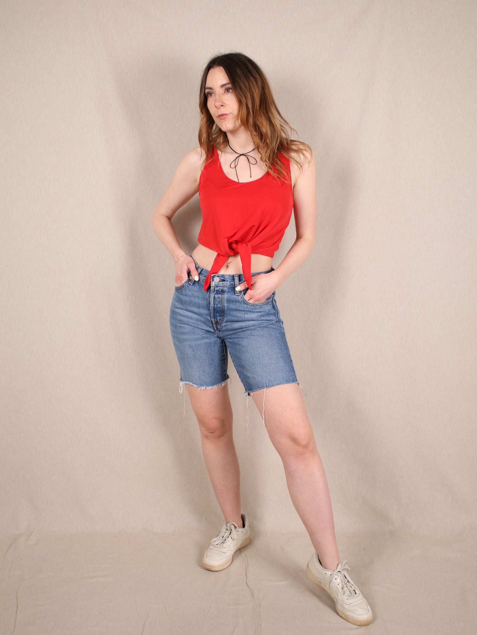 Diese Secondhand-Shorts sind der Inbegriff von Vintage Coolness. Die Levi’s 501, aus reiner Baumwolle, hat diesen perfekt eingetragenen Look mit leicht ausgefranstem Saum - als hätte sie schon ein paar legendäre Sommer hinter sich. High-Waist, zeitlos und vielseitig: Ein Klassiker, der zu allem passt.