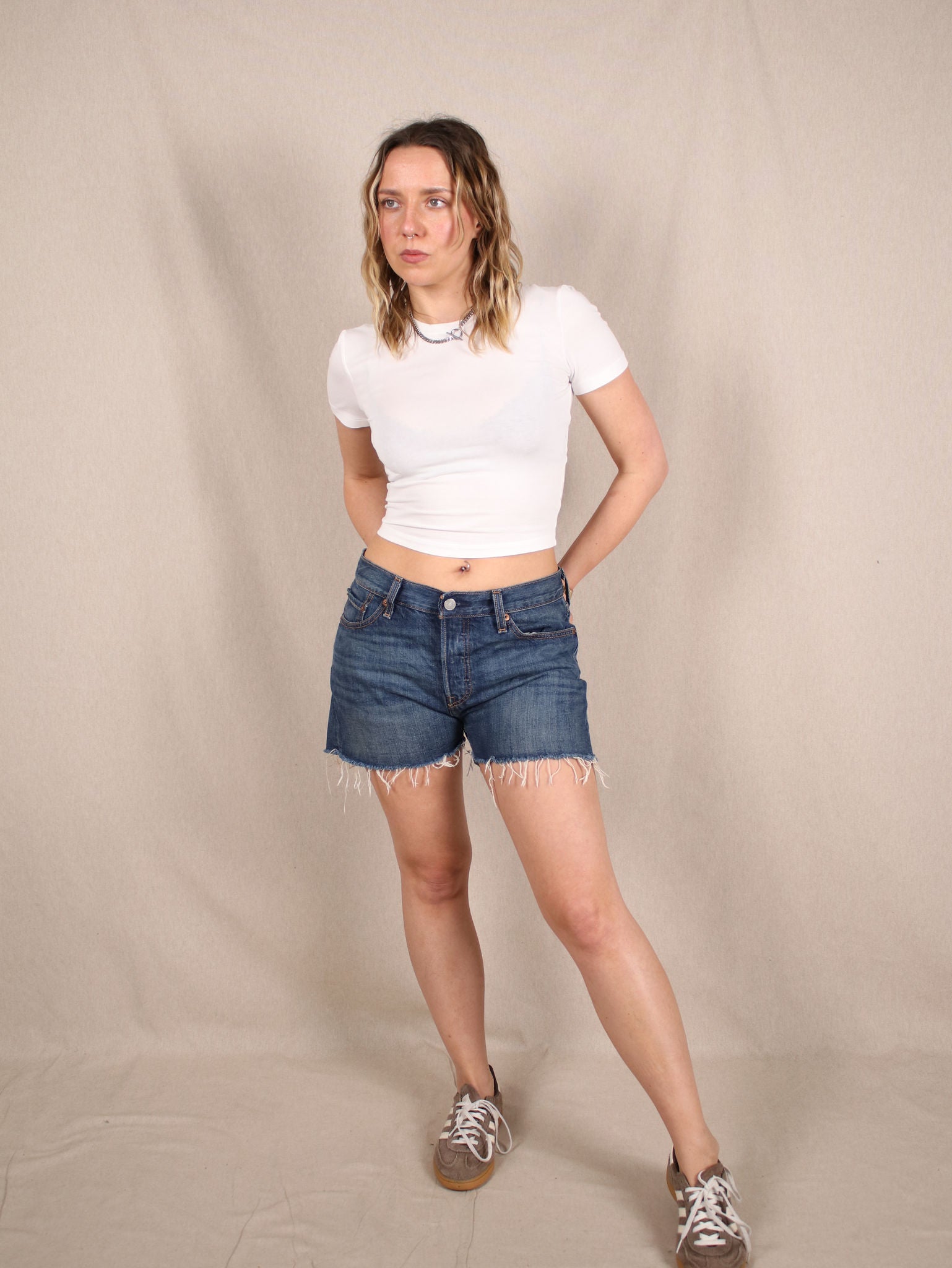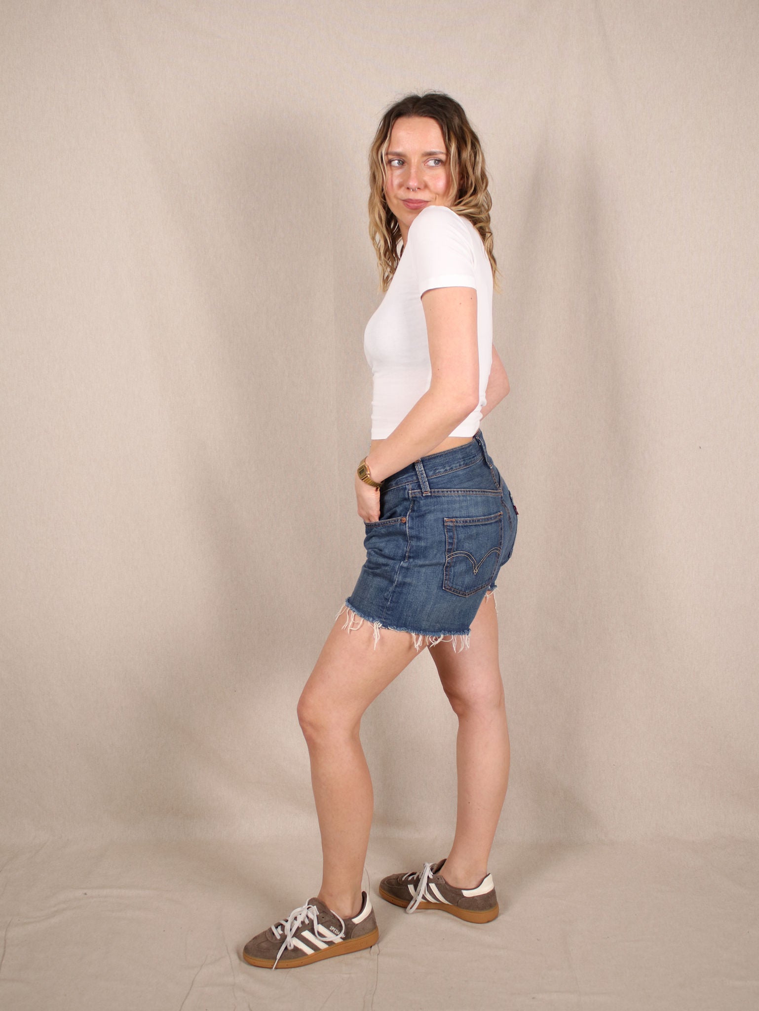 Diese Secondhand Levi’s 501 Shorts sind der Inbegriff von lässigem Vintage-Style. 100 % Baumwolle für den authentischen Denim-Look, mit coolen Fransen für den extra edgy Touch. Ein zeitloser Klassiker, der in keinem Kleiderschrank fehlen sollte!