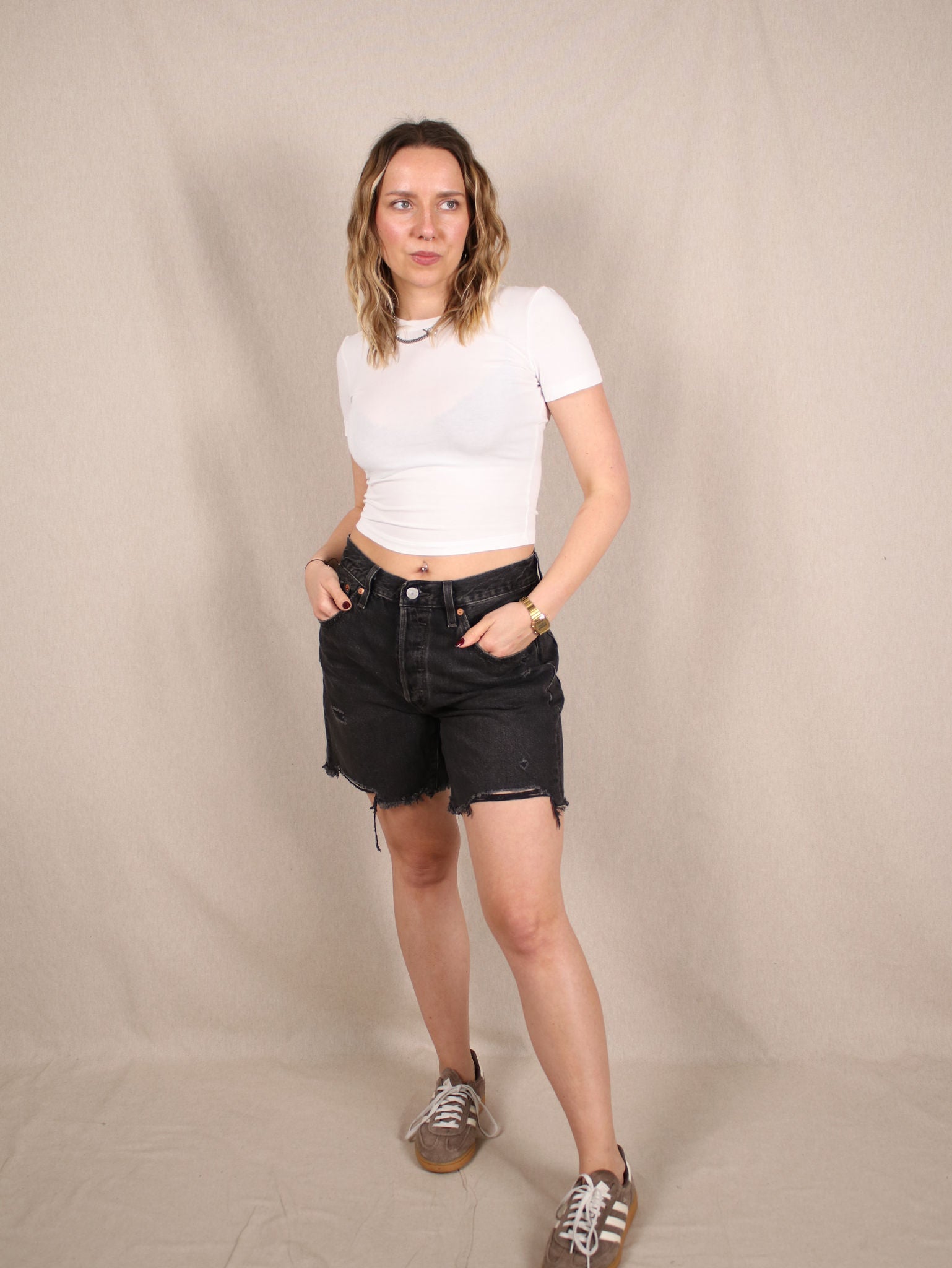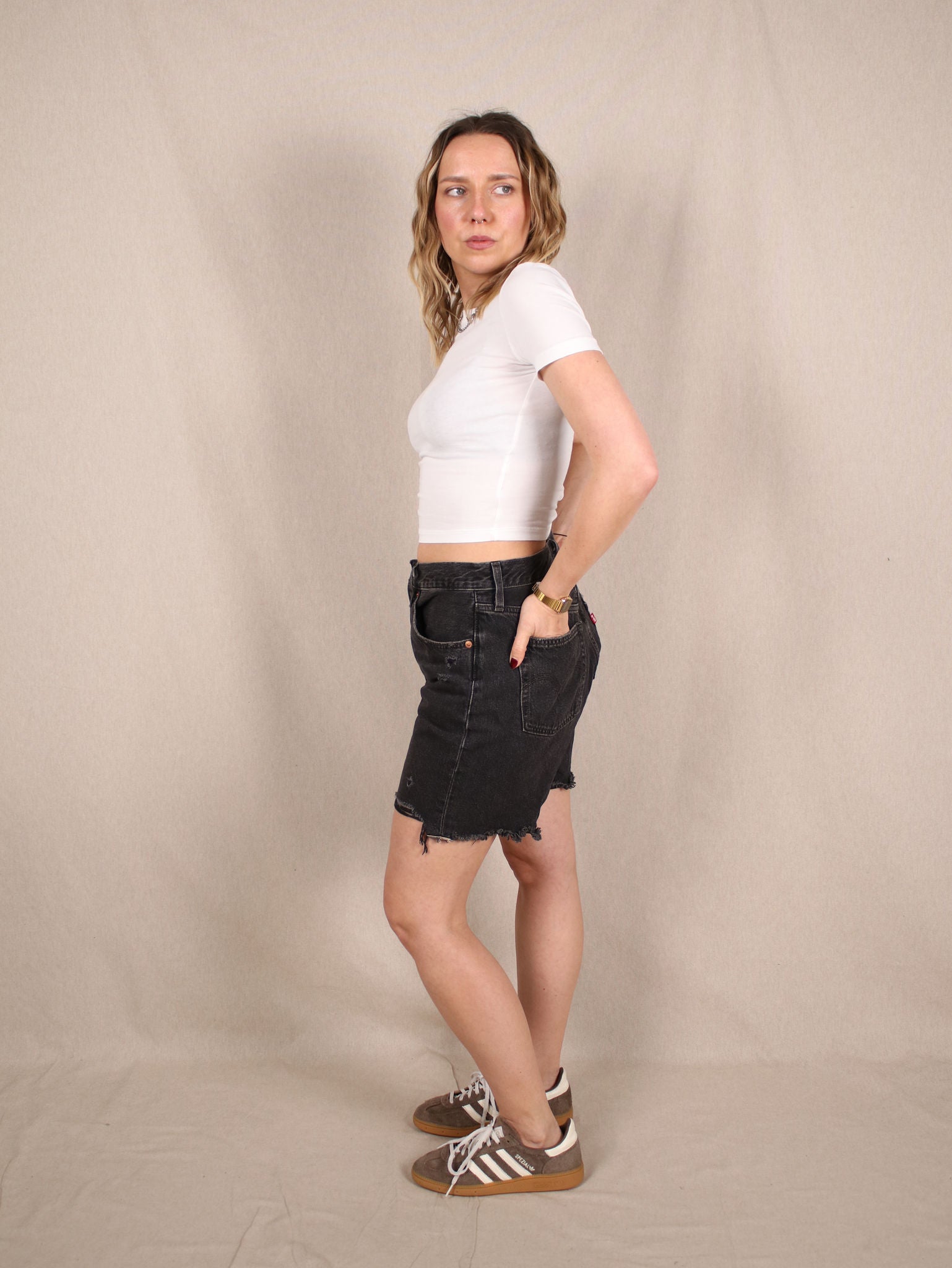Diese Secondhand Levi’s 501 Shorts in Schwarz sind dein perfekter Begleiter für einen lässigen, aber stylischen Look. 100 % Baumwolle, authentischer Vintage-Vibe und genau die richtige Portion Roughness dank der angesagten Fransen. Ein Klassiker, der nie out ist - und dazu noch nachhaltig!