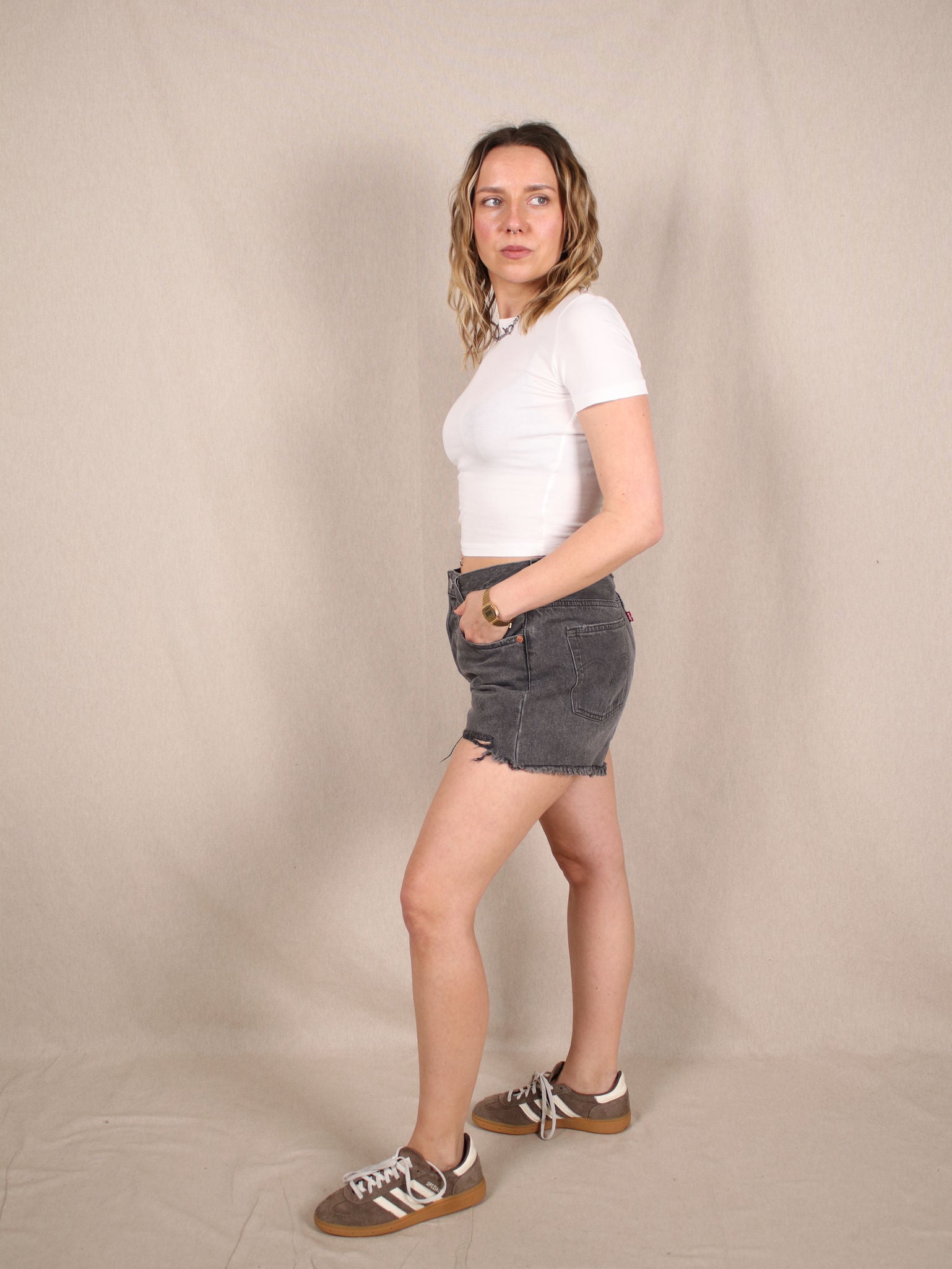 Diese Secondhand Levi’s 501 Shorts in Schwarz sind der perfekte Mix aus lässig und rebellisch. 100 % Baumwolle, coole Fransen und der klassische Vintage-Fit machen sie zum Must-Have für jede Denim-Liebhaberin. Zeitlos, nachhaltig und einfach verdammt stylisch!