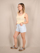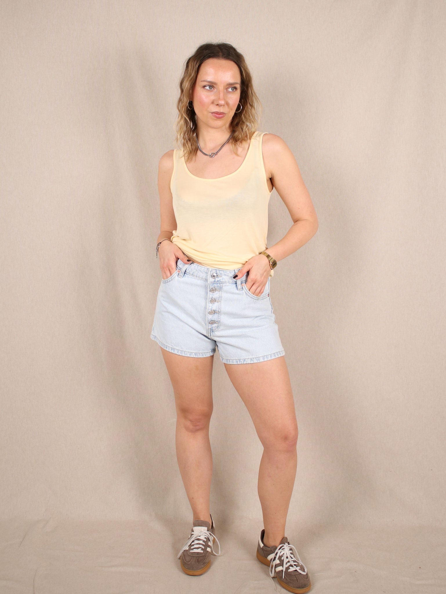 Klassisch, lässig und vielseitig - diese neuwertigen Mango-Jeans-Shorts in Mid-Waist und Straight Fit bringen entspannte Coolness in jede Sommergarderobe. Die hochwertige Baumwolle sorgt für Komfort, während die Knopfleiste und die authentische Waschung den Vintage-Vibe verstärken. Ob mit Croptop für ein luftiges Outfit oder mit Blazer für einen modernen Stilbruch – dieses Secondhand-Piece passt sich mühelos an.