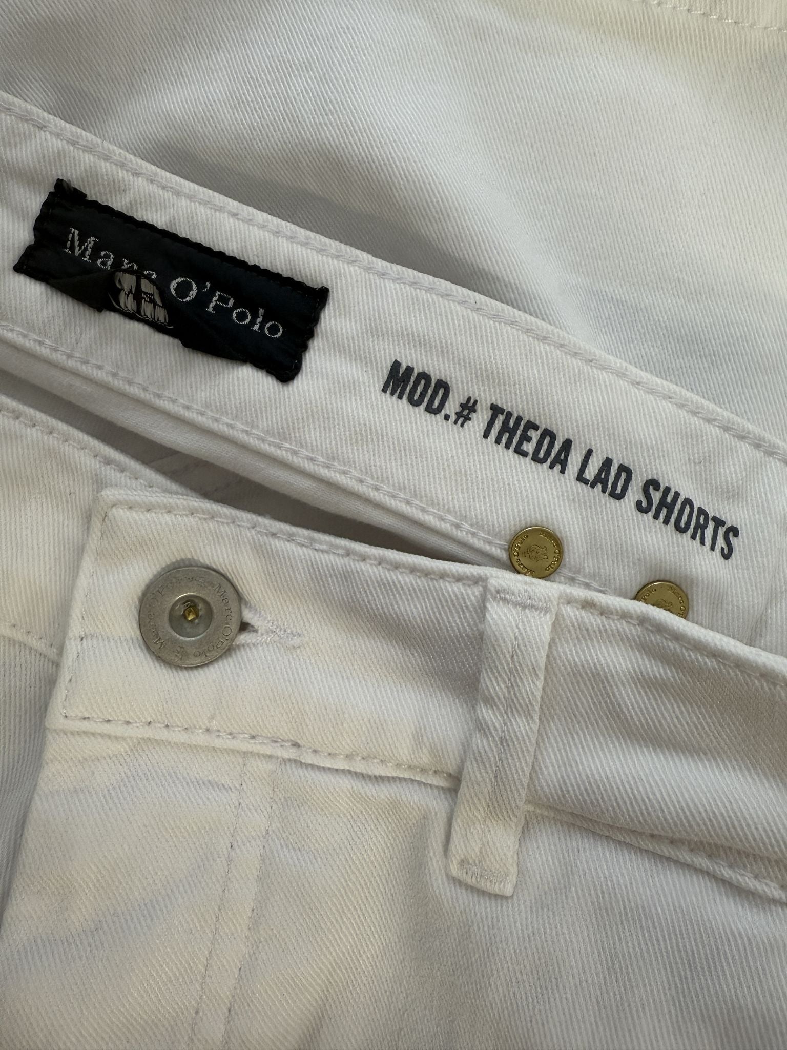 Diese weiße Bermuda Jeans-Shorts von Marc O’Polo ist dein Secondhand Go-to für cleane Sommerlooks. Der klassische Schnitt trifft auf lässigen Denim-Charme – easy zu kombinieren und perfekt für heiße Tage in der City oder am Beach.