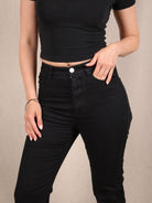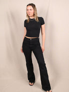 Diese Secondhand Jeans von & Other Stories bringt 70s-Flair direkt in deinen Alltag: schwarzer Denim, cooler Flare Fit und ein Hauch Western-Style. Kombiniere sie casual oder edgy – ein Klassiker, der immer geht.