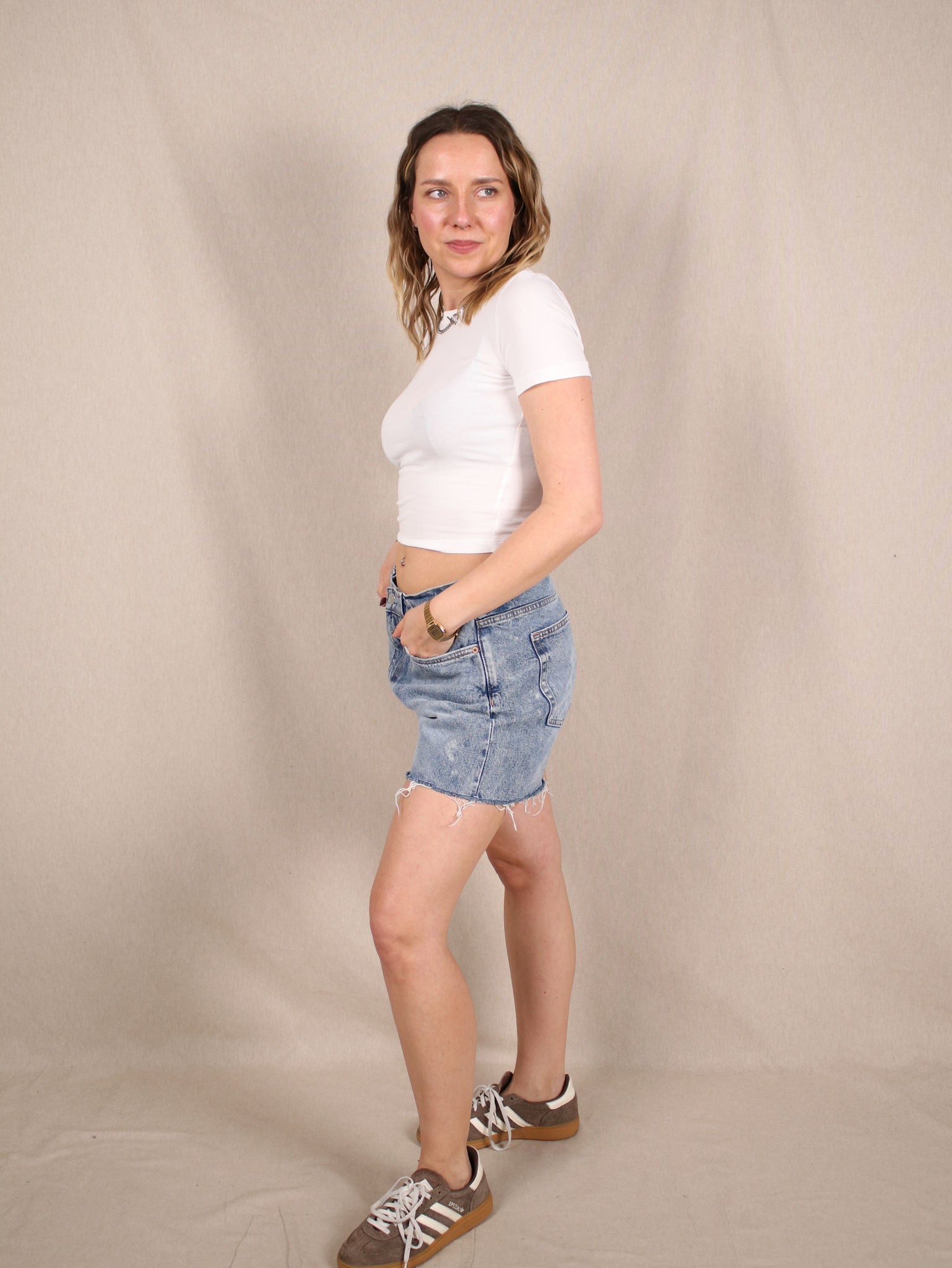 Diese Secondhand & Other Stories Denim Shorts sind ein echtes Essential für deinen Kleiderschrank. 100 % Baumwolle, lässiger Vintage-Wash und der perfekte Raw-Cut-Saum für einen coolen, mühelosen Look. Perfekt für sonnige Tage und entspannte Outfits!
