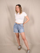 Diese Secondhand & Other Stories Shorts aus 100 % Baumwolle sind der Inbegriff von lässigem Sommer-Style. Heller Denim, coole Fransen und ein entspannter Fit machen sie zum perfekten Basic für jede Gelegenheit. Minimalistisch, modern und einfach zeitlos!