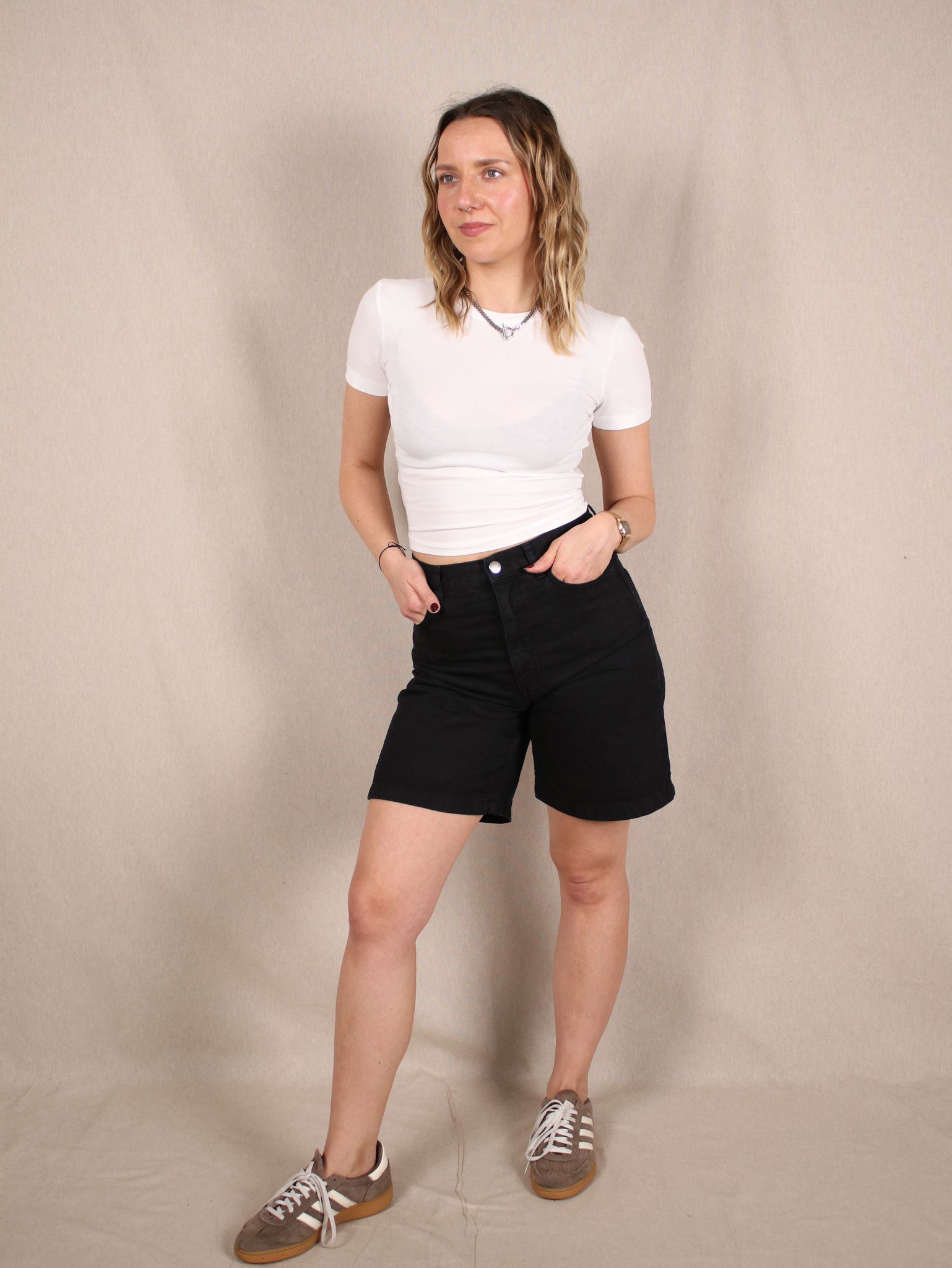 Diese Secondhand-Shorts von & Other Stories sind dein neuer Sommer-Allrounder. Schwarzer Baumwoll-Denim, ein lässiger Schnitt und die perfekte Länge für mühelosen Style. Ob mit Sneakern, Sandalen oder Boots - diese Shorts machen einfach alles mit!