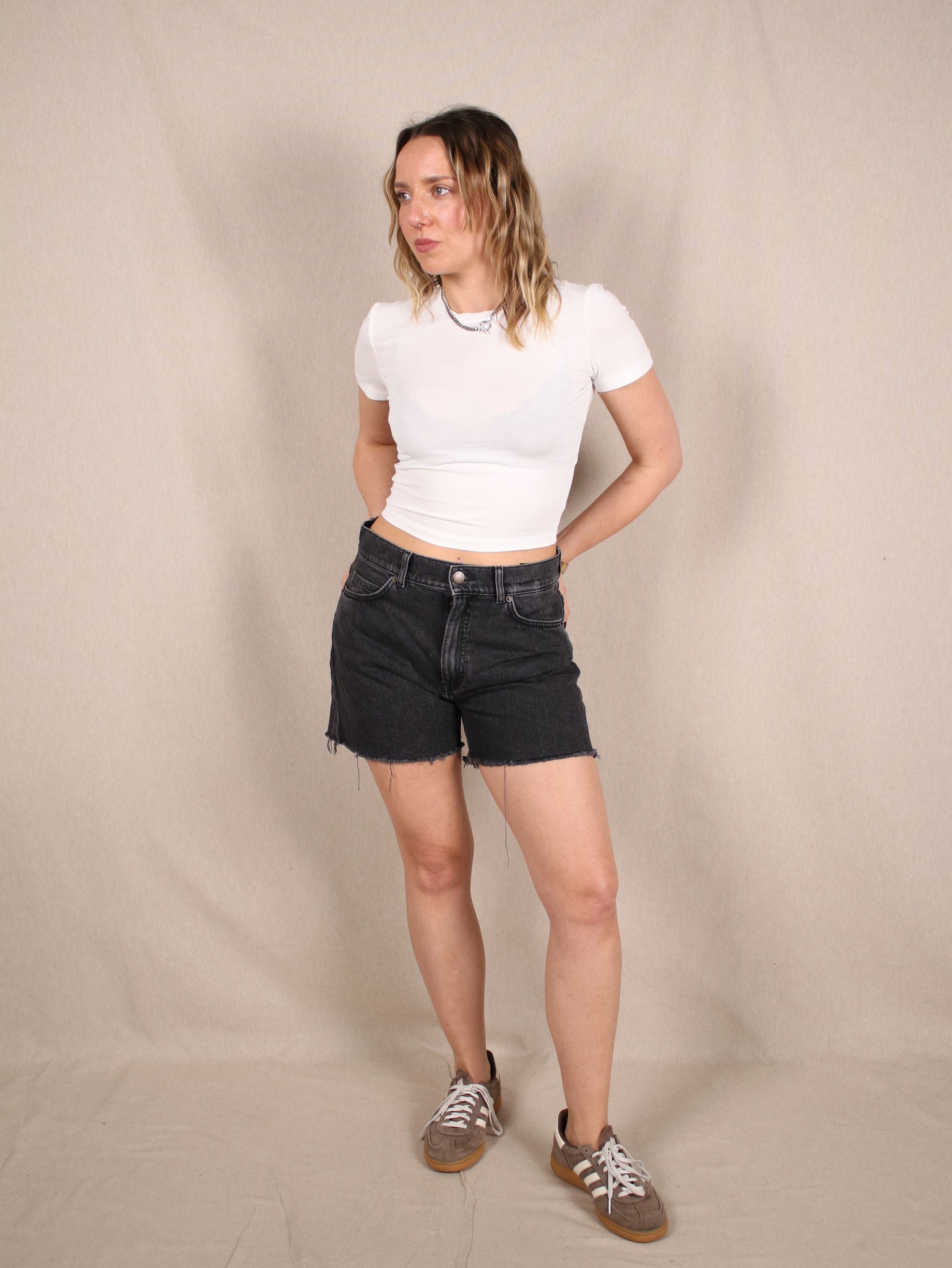 Lässige & Other Stories Denim-Shorts in verwaschenem Schwarz - perfekt für ein entspanntes, urbanes Styling. Gefertigt aus robuster Baumwolle mit einem rohen Saum für den extra Coolness-Faktor. Diese Shorts sind ein echtes Basic-Piece, das sich mit allem kombinieren lässt – von Crop-Tops bis hin zu Oversized-Hemden!