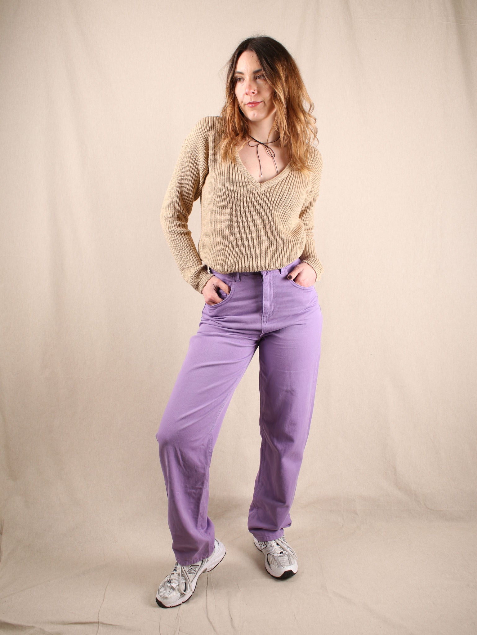 Diese Preloved Jeans von Reclaimed Vintage bringt mit ihrem satten Lilaton echte 70s-Vibes in deine Garderobe. Gefertigt aus hochwertiger Baumwolle, sorgt sie für ein angenehmes Tragegefühl und einen entspannten Fit. Kombiniere sie mit neutralen Tönen für einen cleanen Look oder setze auf Color Blocking – ein echtes Must-have für Fashion-Lover!