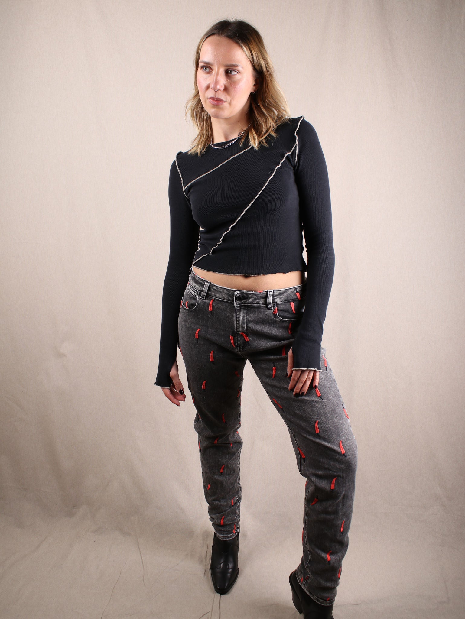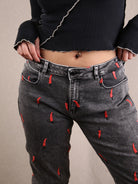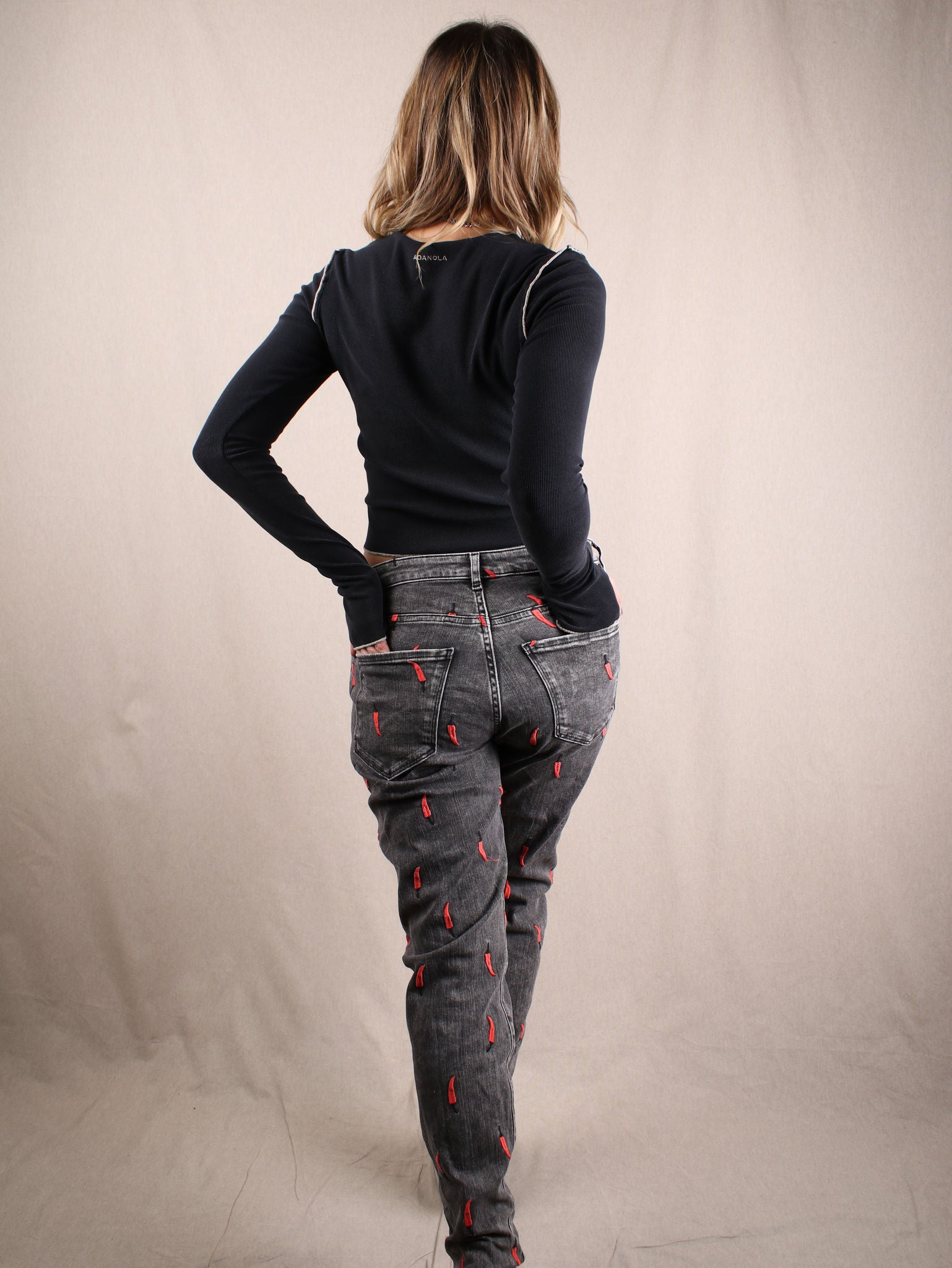 Slim Fit Jeans mit Pepperoni-Stickerei
