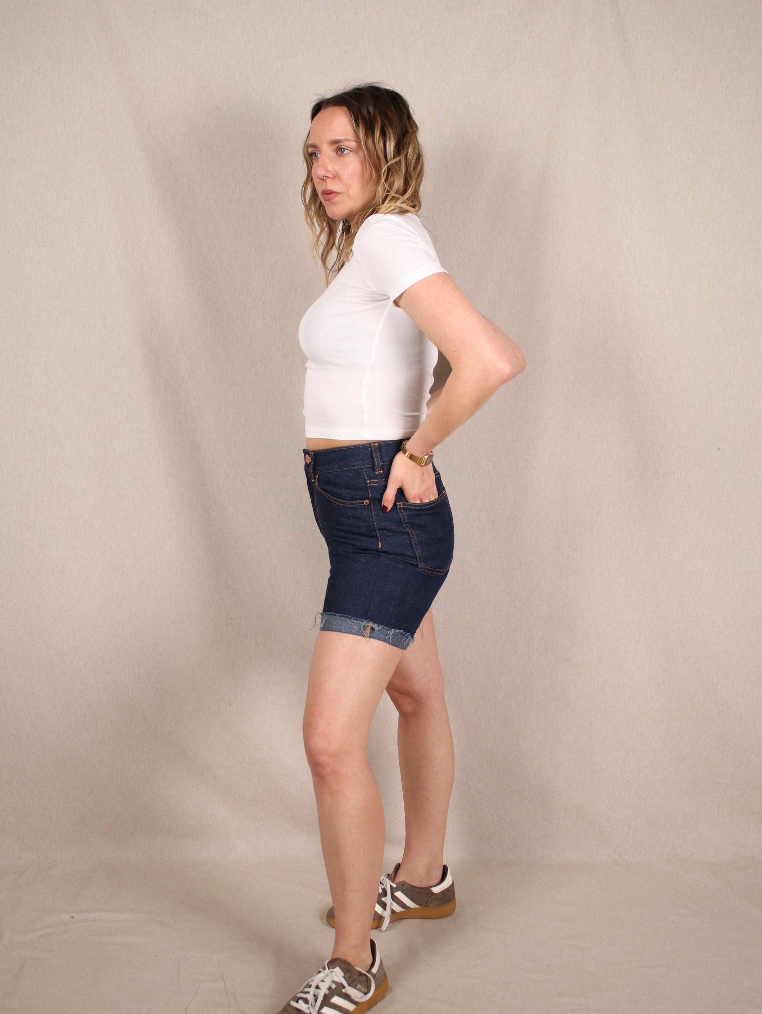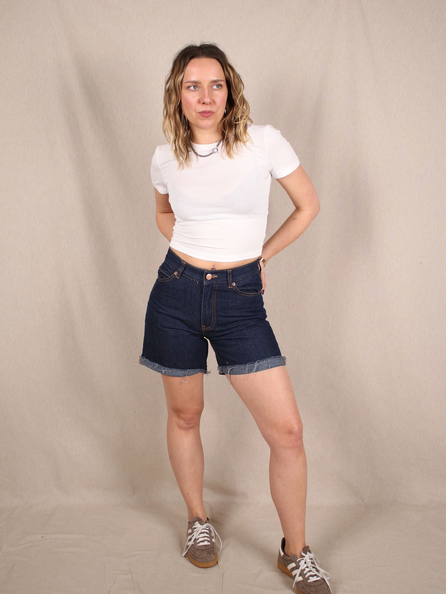Diese Secondhand Weekday Judgementday Wide Jeans Shorts in Größe S sind der perfekte Mix aus modernem Fit und lässigem Vintage-Vibe. Dunkler Denim, entspannte Passform und raw-cut Säume sorgen für einen coolen, mühelosen Look. Perfekt für alle, die es minimalistisch und trotzdem edgy mögen!