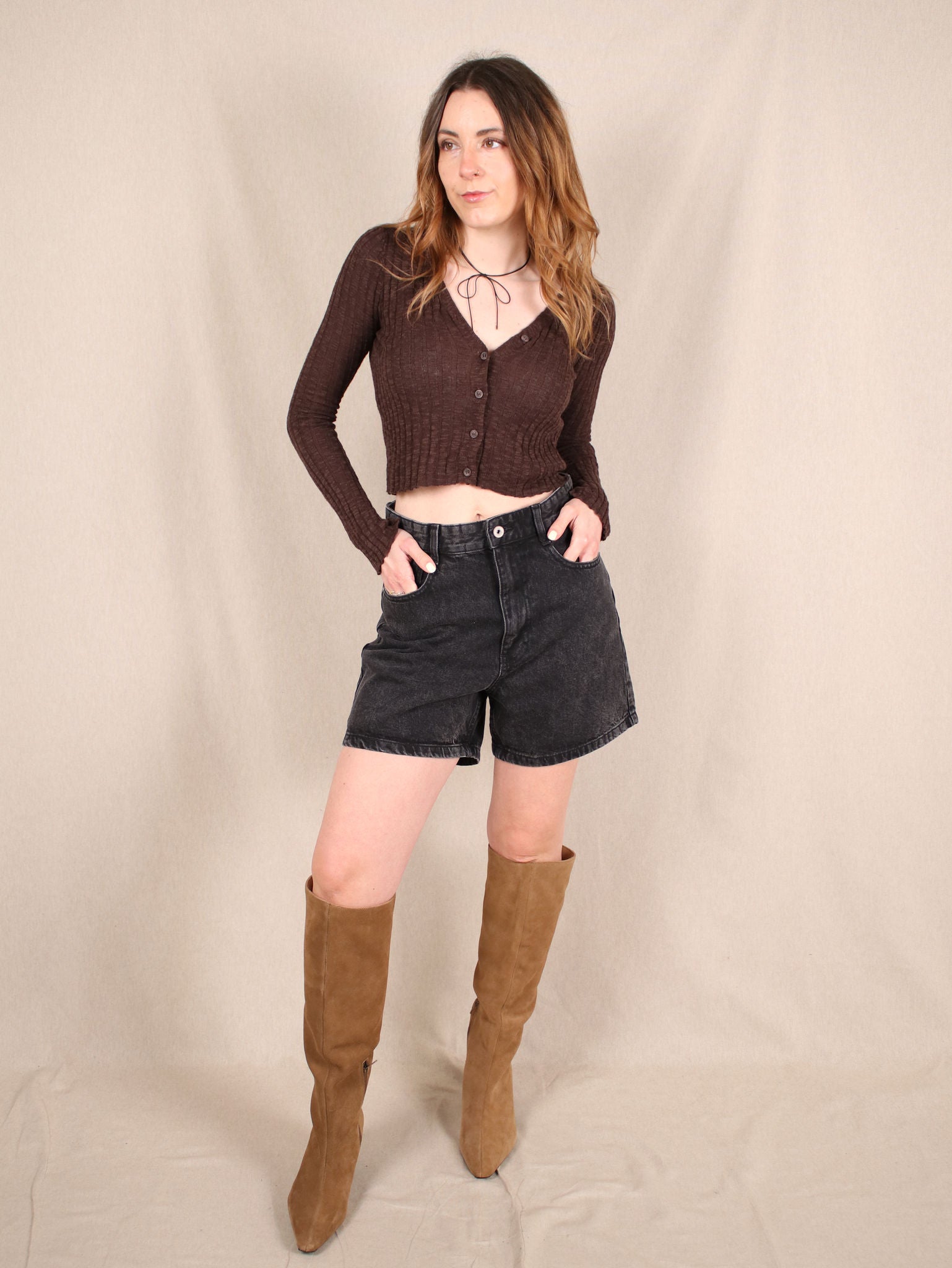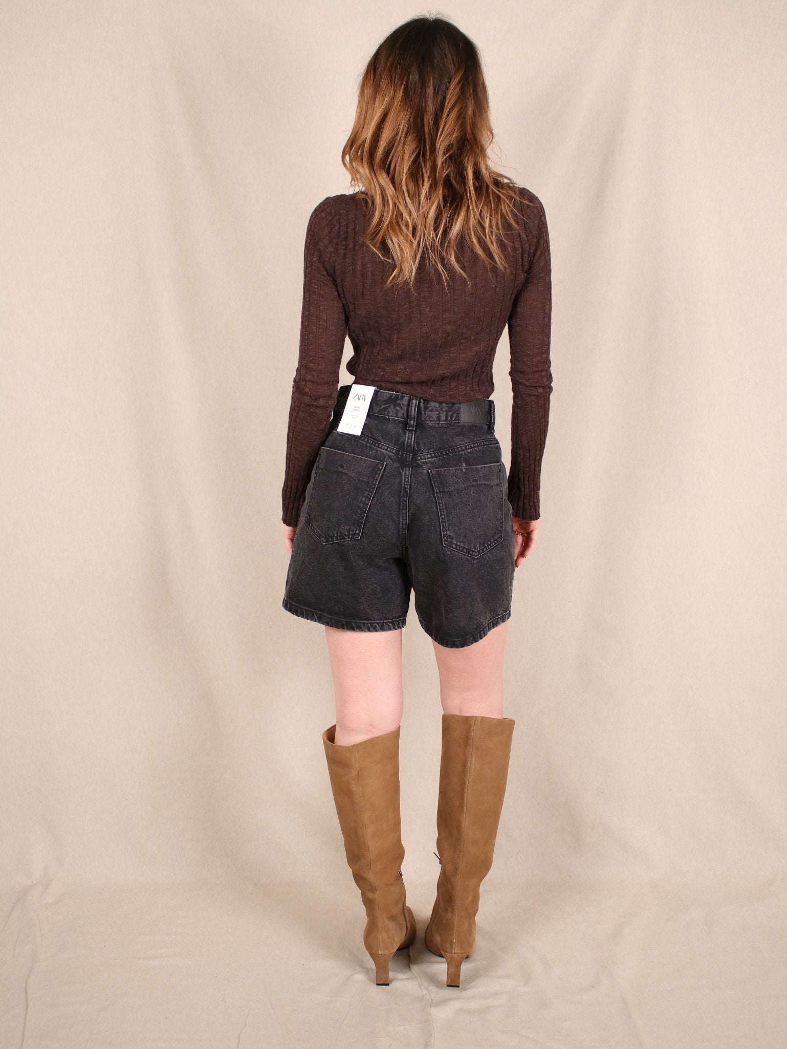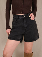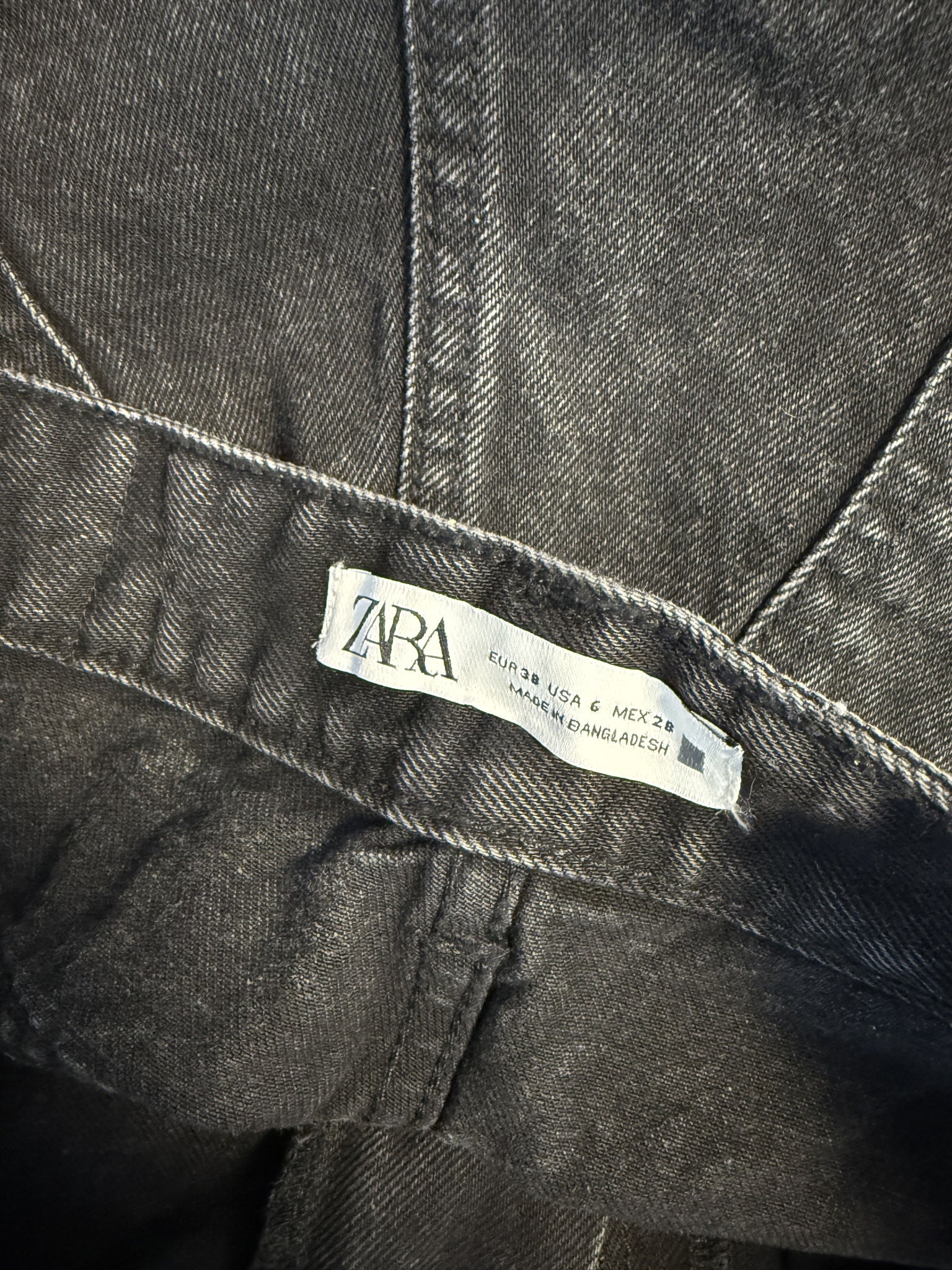 Die neuwertige Jeans-Shorts von Zara aus reiner Baumwolle ist ein zeitloser Allrounder für lässige Looks. Der ausgewaschene Schwarzton sorgt für einen coolen Vintage-Vibe, die Wide Leg High Waist Form ist super angesagt - perfekt für jeden Style!