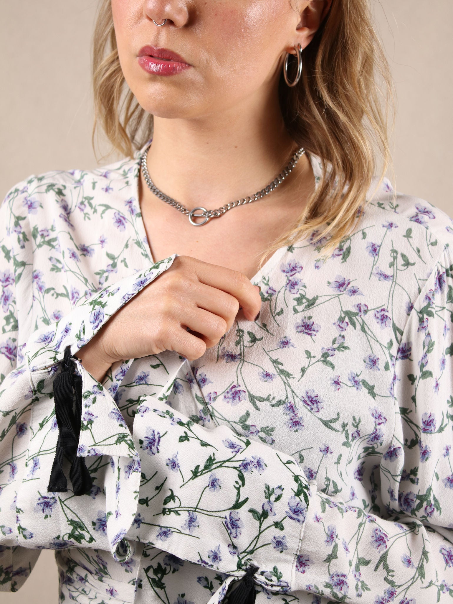 Diese zauberhafte Wickelbluse aus weicher Viskose ist ein wahr gewordener Blütentraum! Das romantische Lavendel-Print verleiht ihr eine verspielte Leichtigkeit, während die zarten Schleifen an den Ärmeln für das gewisse Extra sorgen. Durch den schmeichelnden Schnitt und das Wickeldesign umschmeichelt sie deine Silhouette und versprüht pure Eleganz mit einem Hauch von Vintage-Flair. Perfekt für einen süßen, femininen Look – ob zum Stadtbummel oder zum Date unter dem Sternenhimmel!