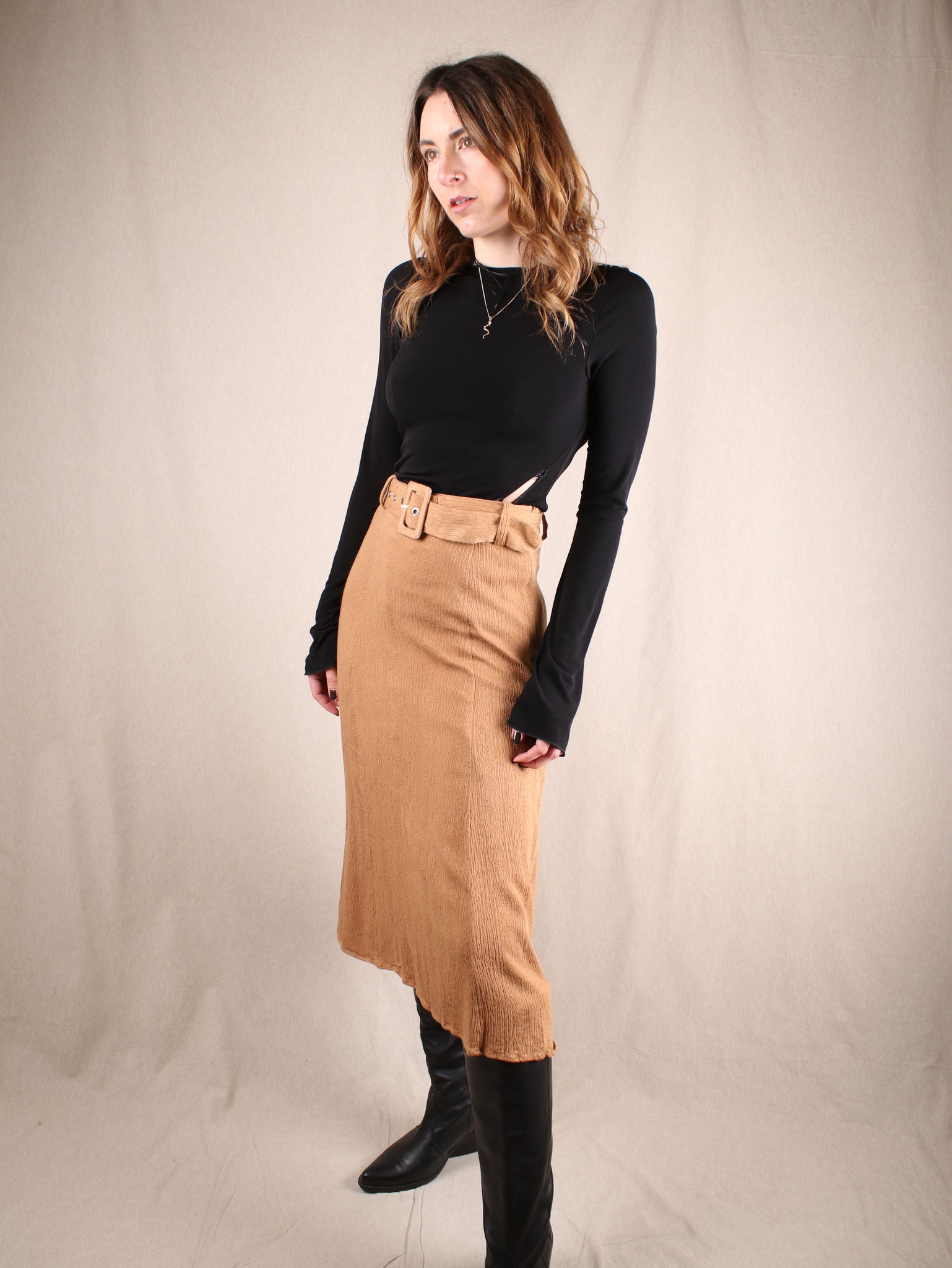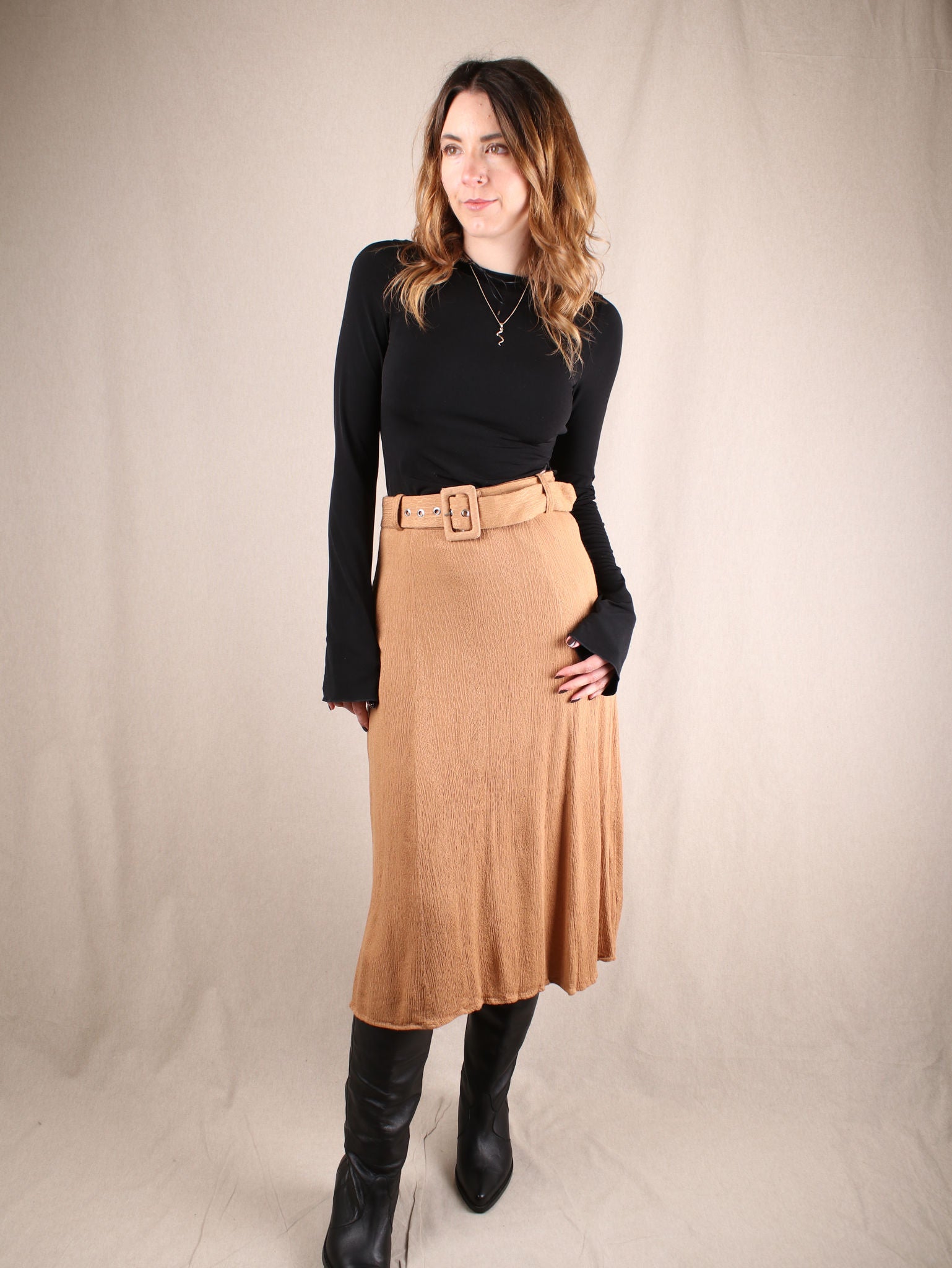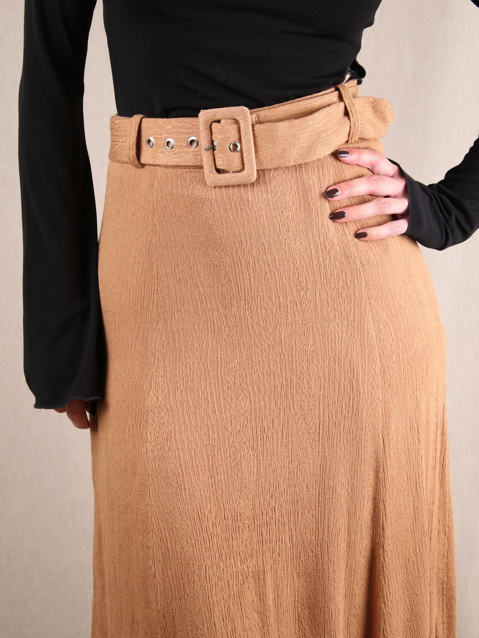 Ausgestellter Secondhand Midirock mit Gürtel von Edited