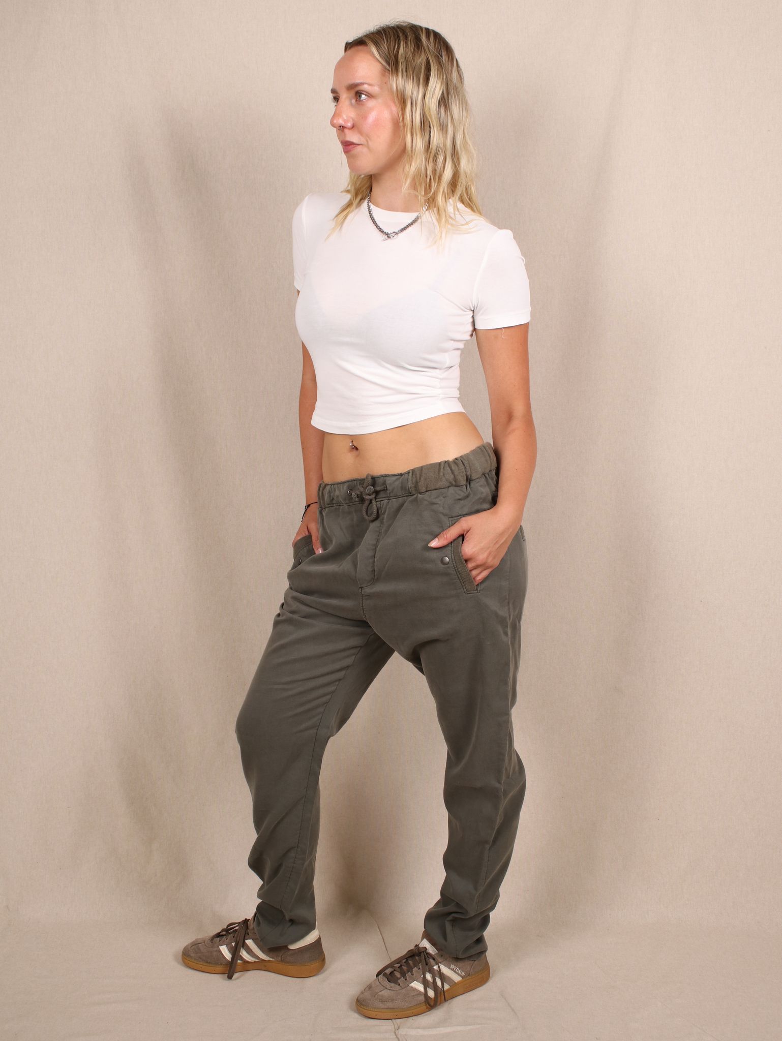 Diese olivegrüne Hose von Marc O'Polo bringt lässige Coolness in deinen Kleiderschrank. Der lockere Schnitt und das leichte Lyocell-Material machen sie zum idealen Secondhand-Fundstück für Alltag und Abenteuer. Ob mit Sneakern oder Chunky Boots – der Utility-Style ist ready to wear.