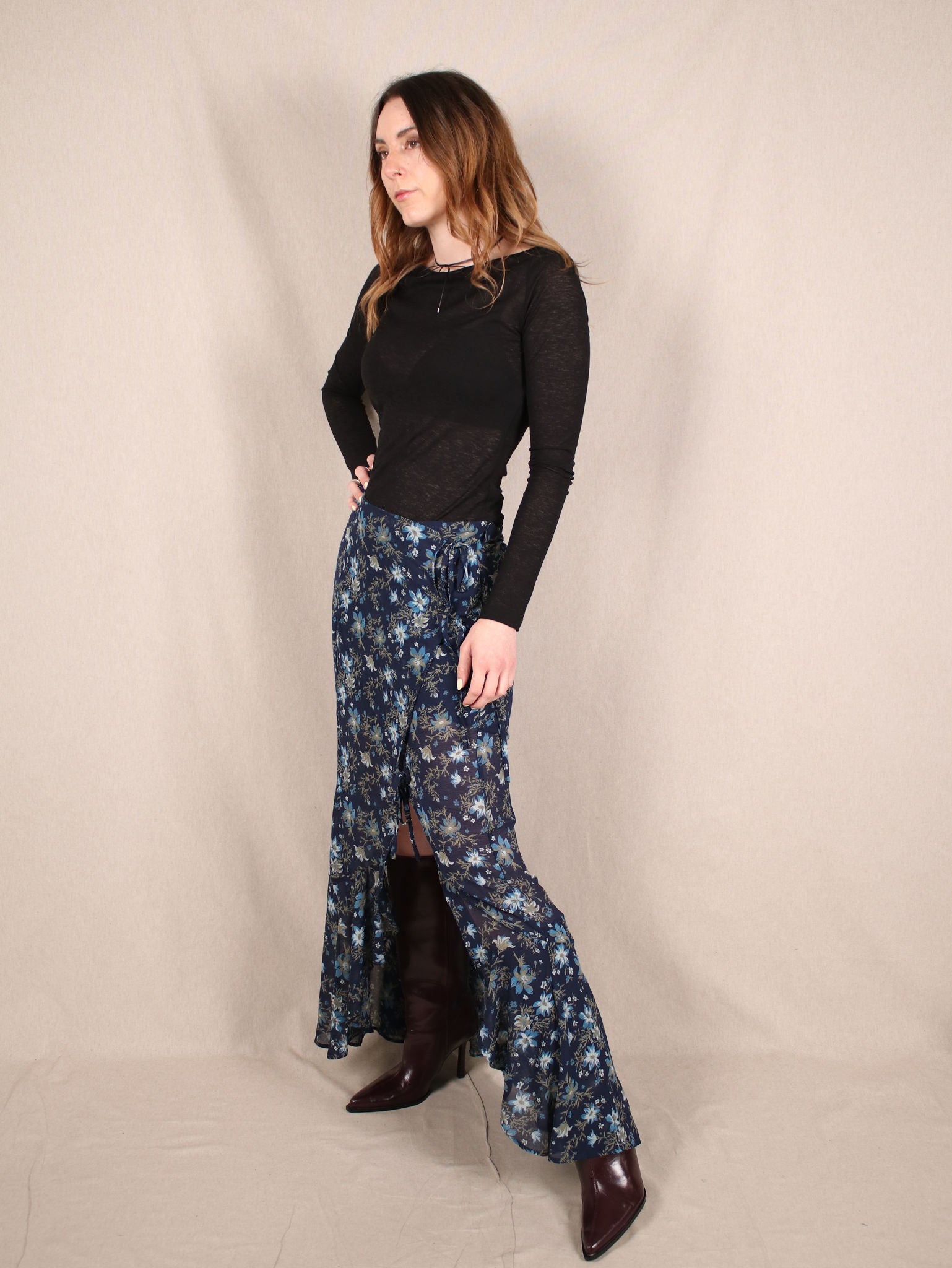 Dieser florale Maxirock von Free People ist pure Boho-Magie! Mit seinen verspielten Bindeschleifen, dem luftigen Mix aus Polyester und Viskose und den raffinierten Beinschlitzen bringt er Drama in jeden Look. Perfekt für wilde Festival-Nächte oder entspannte Stadtbummel - natürlich als nachhaltiger Secondhand-Fund!