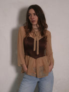 Transparente Bluse aus Chiffon mit Schleife und Volants