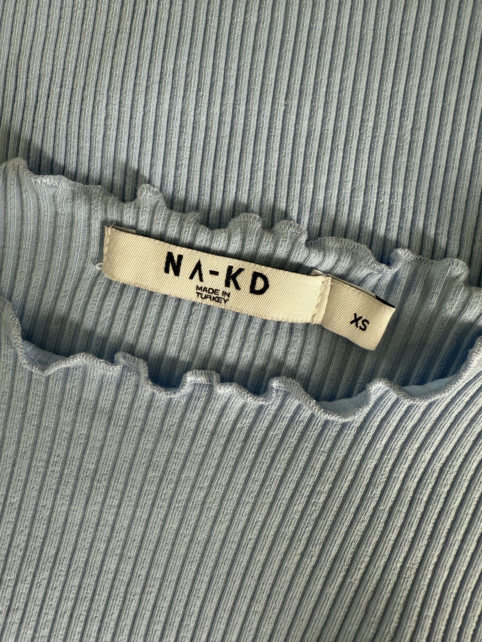 Dieses hellblaue T-Shirt von NA-KD ist wie ein Löffel Vanilleeis für dein Outfit: süß, soft und ein bisschen Y2K. Der enganliegende Rippstoff schmeichelt der Silhouette, während der Baby-Blue-Ton zum Träumen einlädt – ob zum Croissant-Date oder beim Binge-Watchen deiner Lieblingsromcom. Und das Beste? Dieses Piece ist Secondhand – für Looks mit Verantwortung.