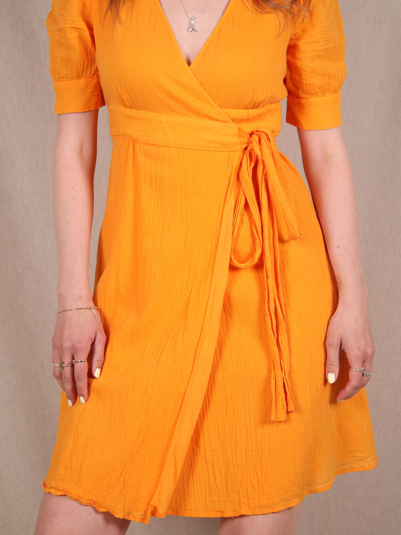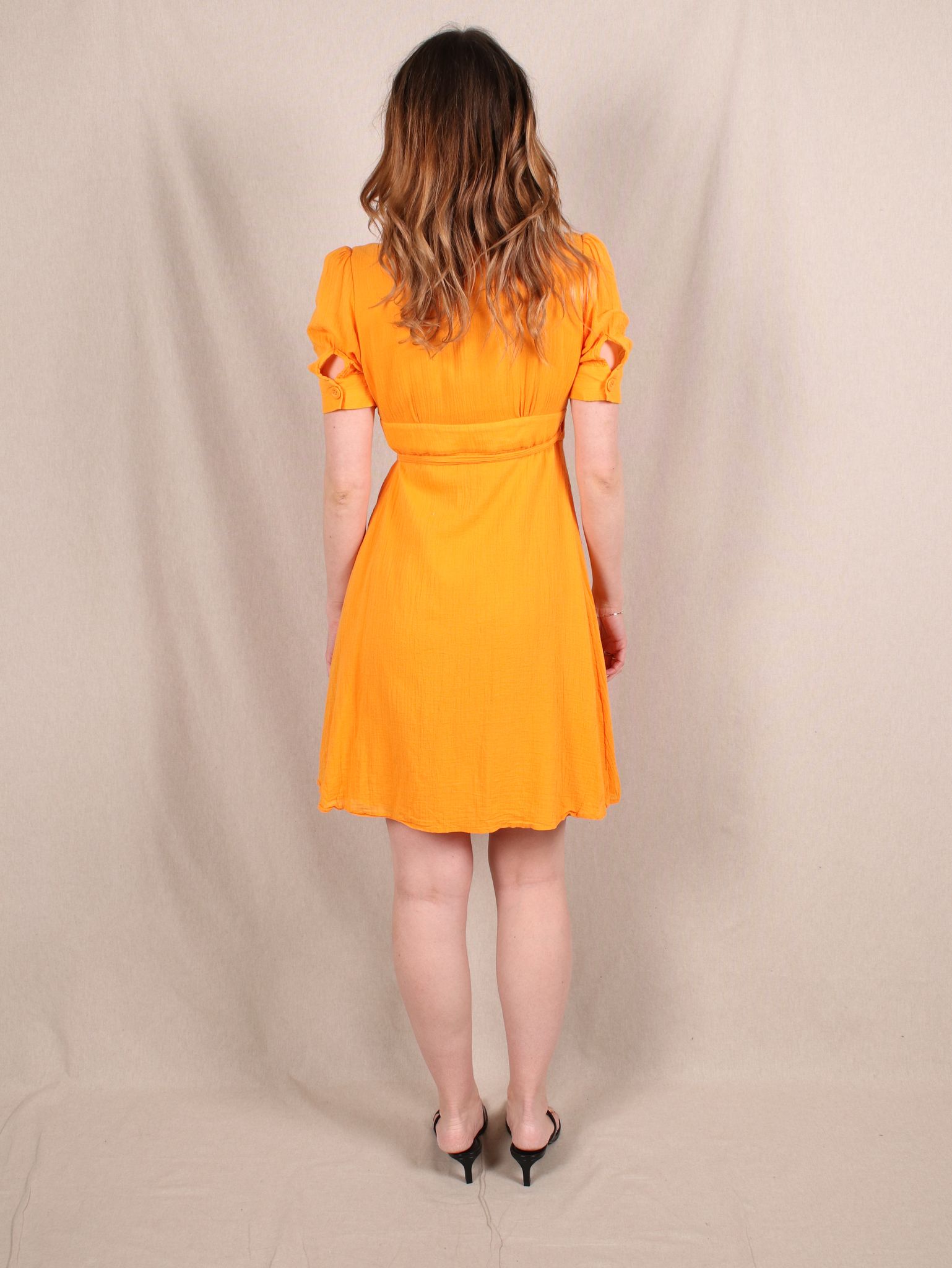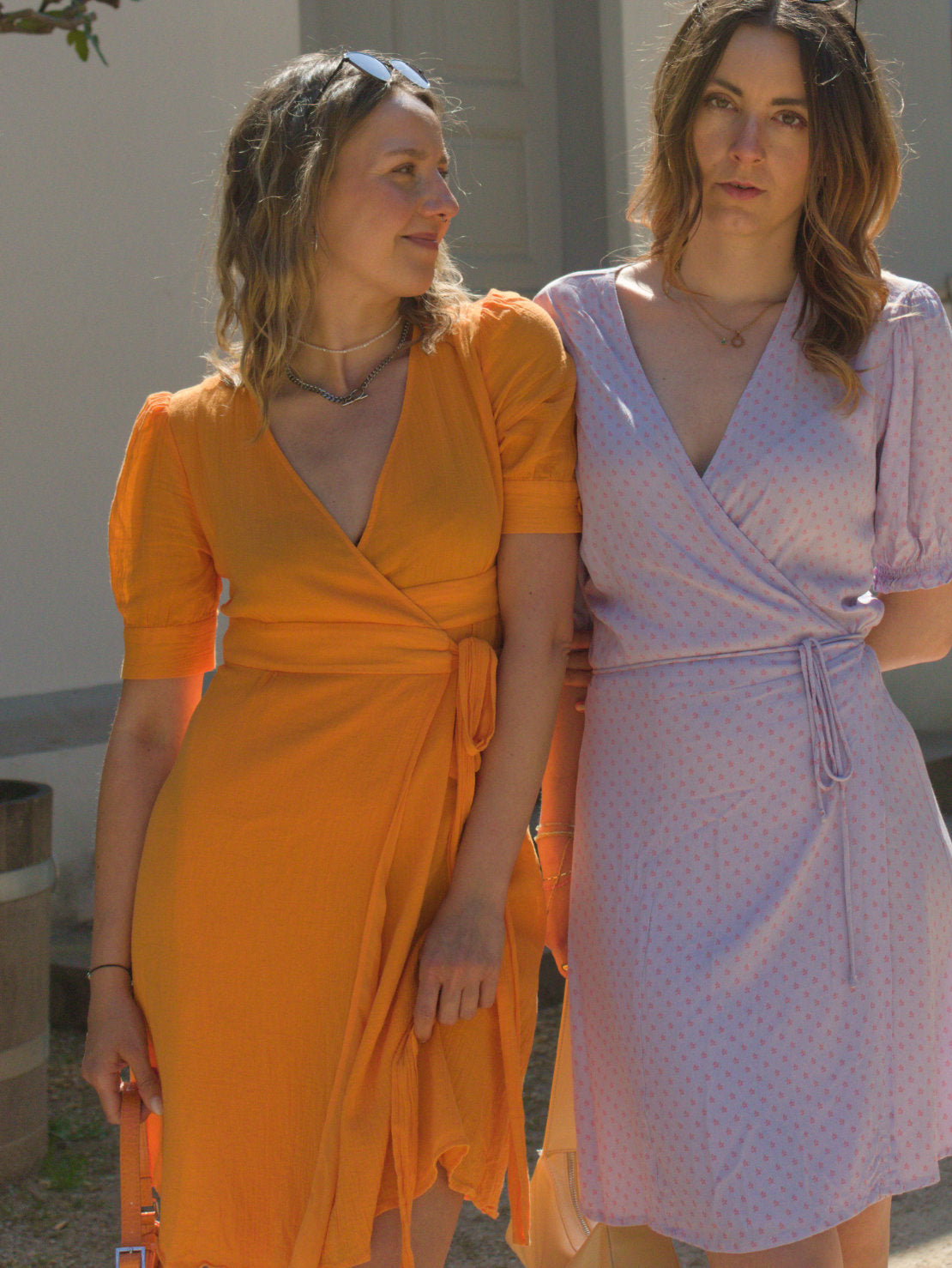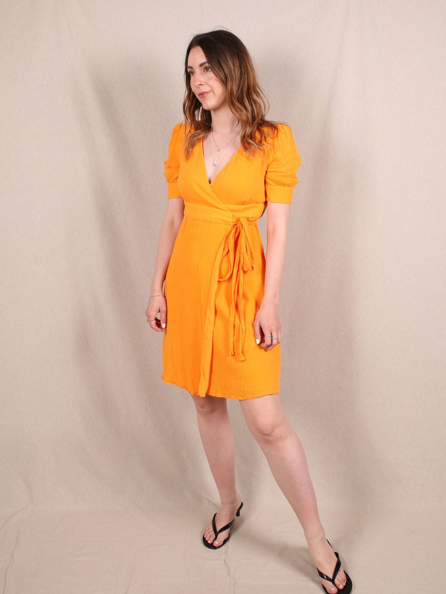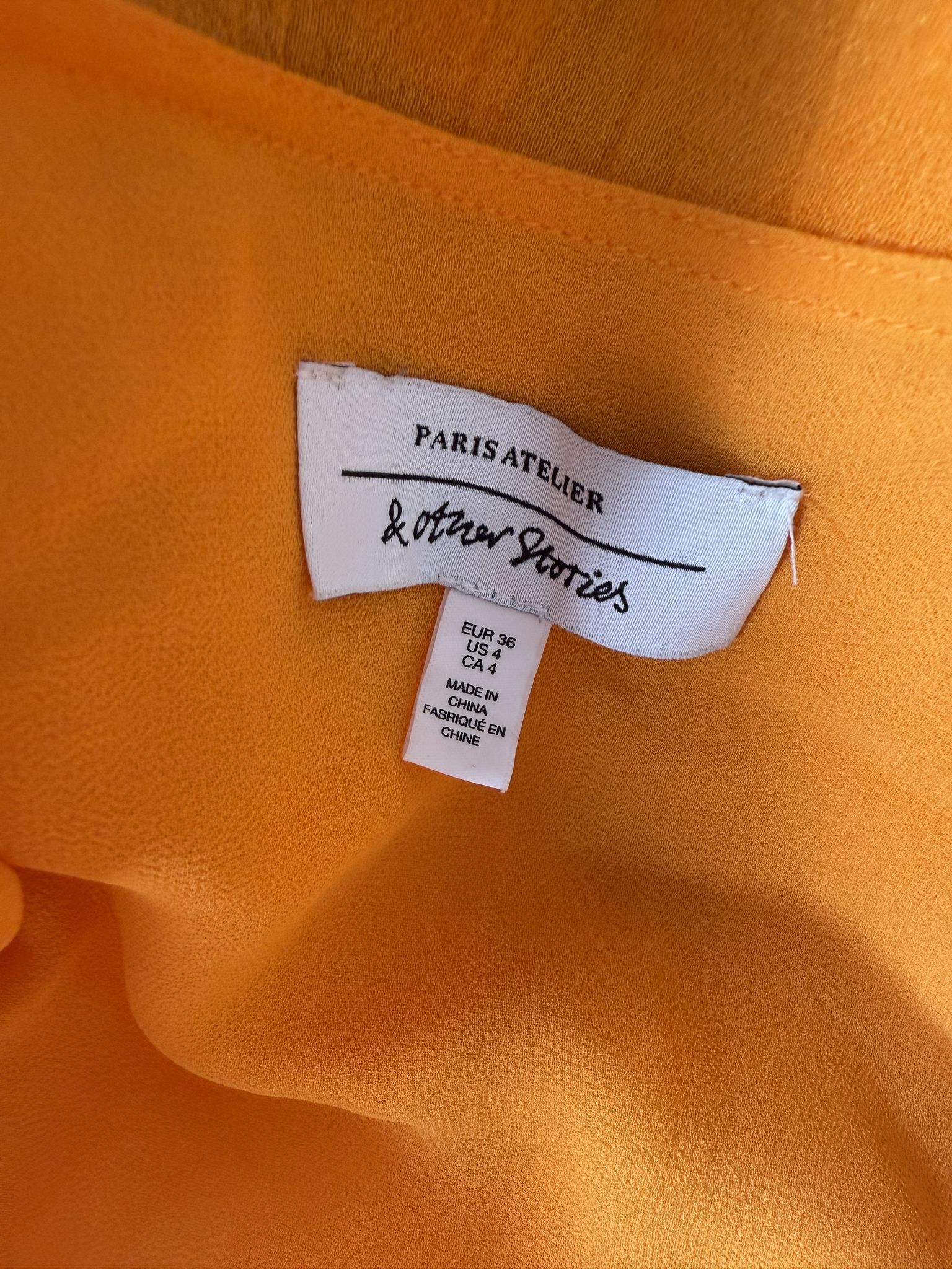 Du suchst den perfekten Mix aus easy und wow? Dieses Secondhand-Wickelkleid von & Other Stories in strahlendem Orange bringt Farbe und Flair in deinen Look. Mit taillierter Passform und süßen Puffärmeln bist du sofort ready for sunshine & compliments.