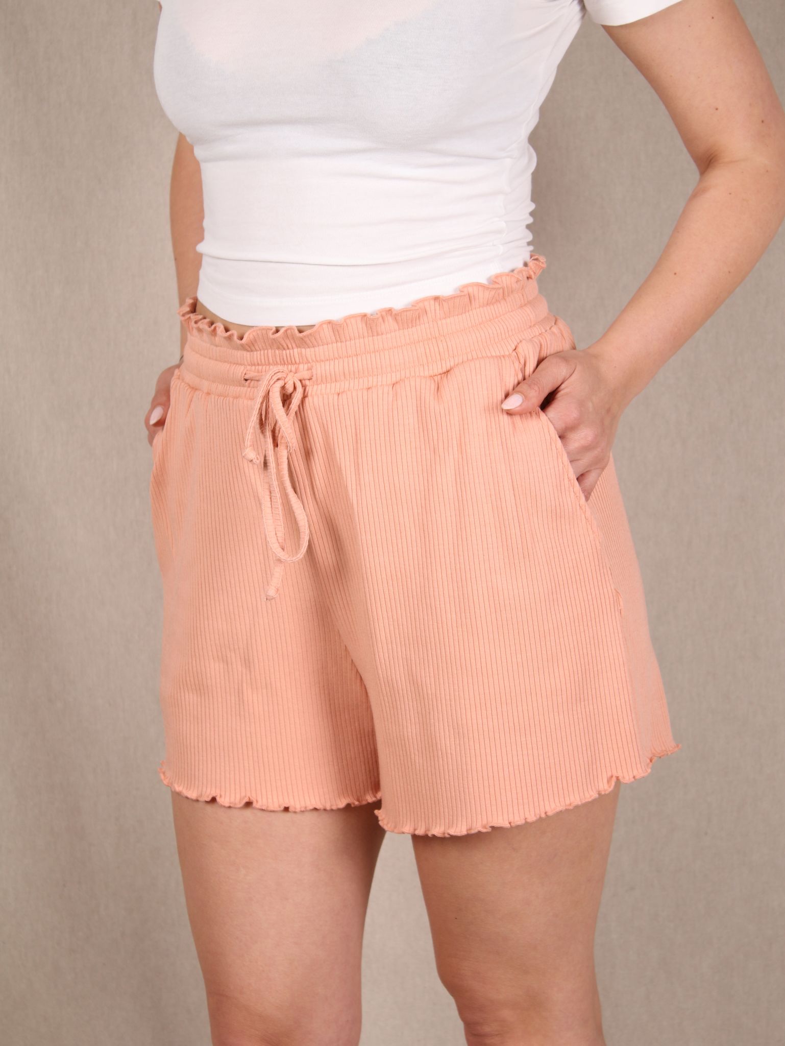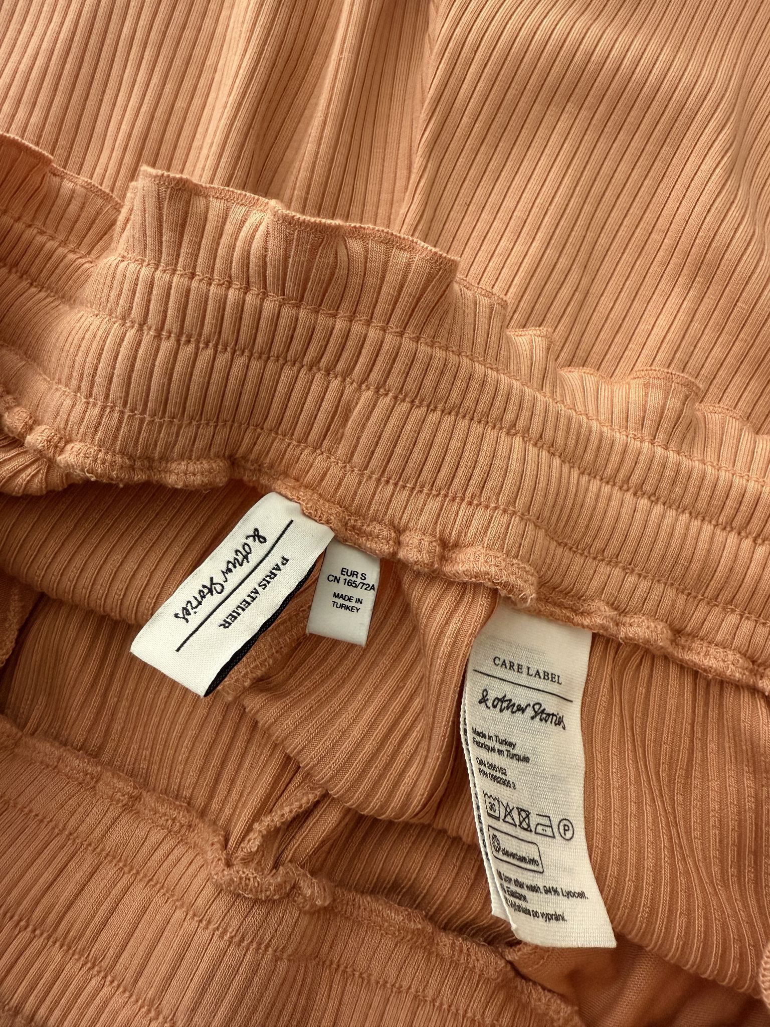 Diese peachy-roséfarbenen Shorts von & Other Stories sind wie ein zart schmelzendes Sorbet an heißen Sommertagen. Aus weichem Rippstoff mit verspieltem Lettuce-Hem und lockerem Fit sind sie der perfekte Mix aus Komfort und Coolness. Ob für den Strand, Balkonien oder den nächsten Coffee Run - these shorts got you covered.