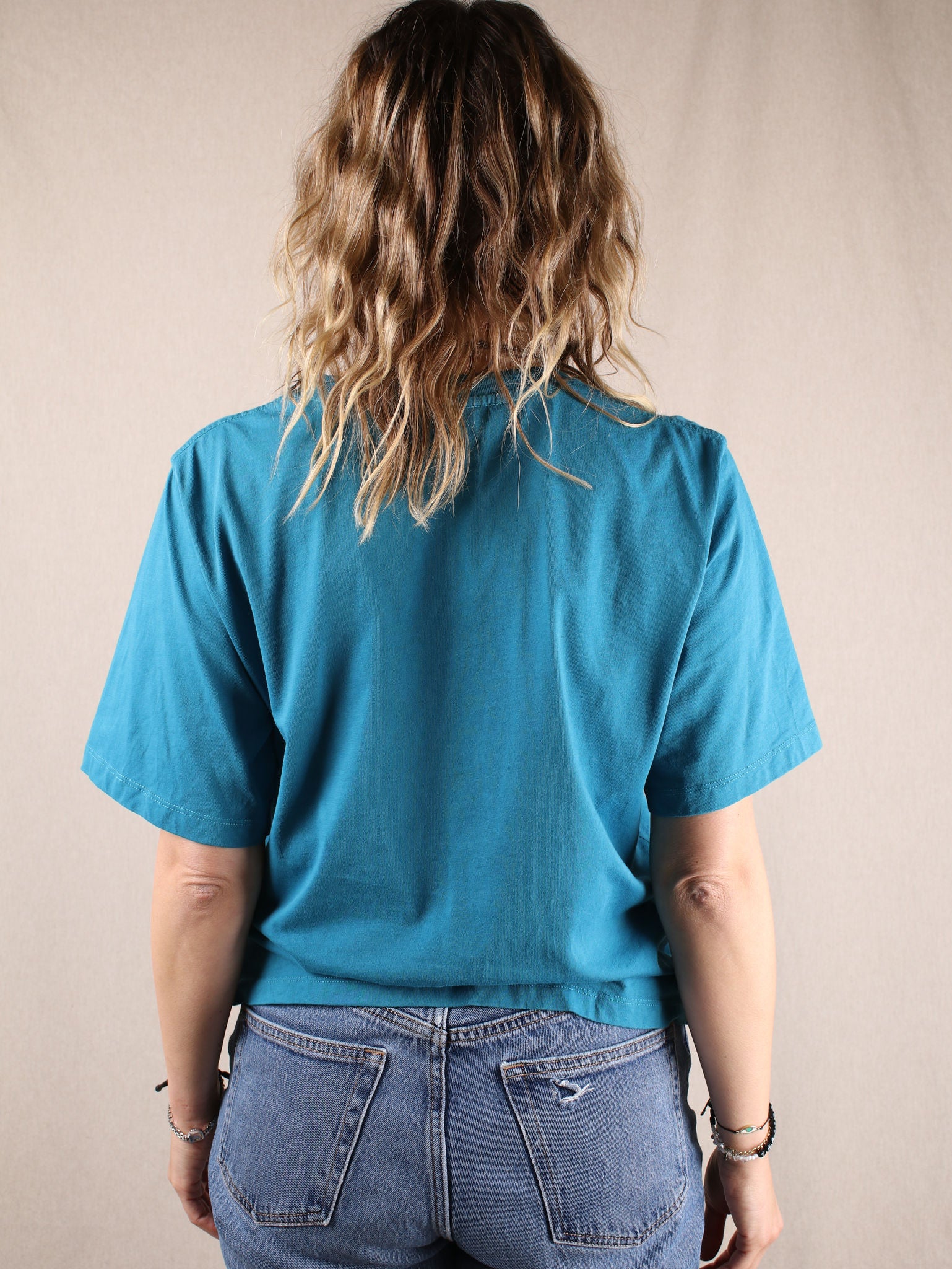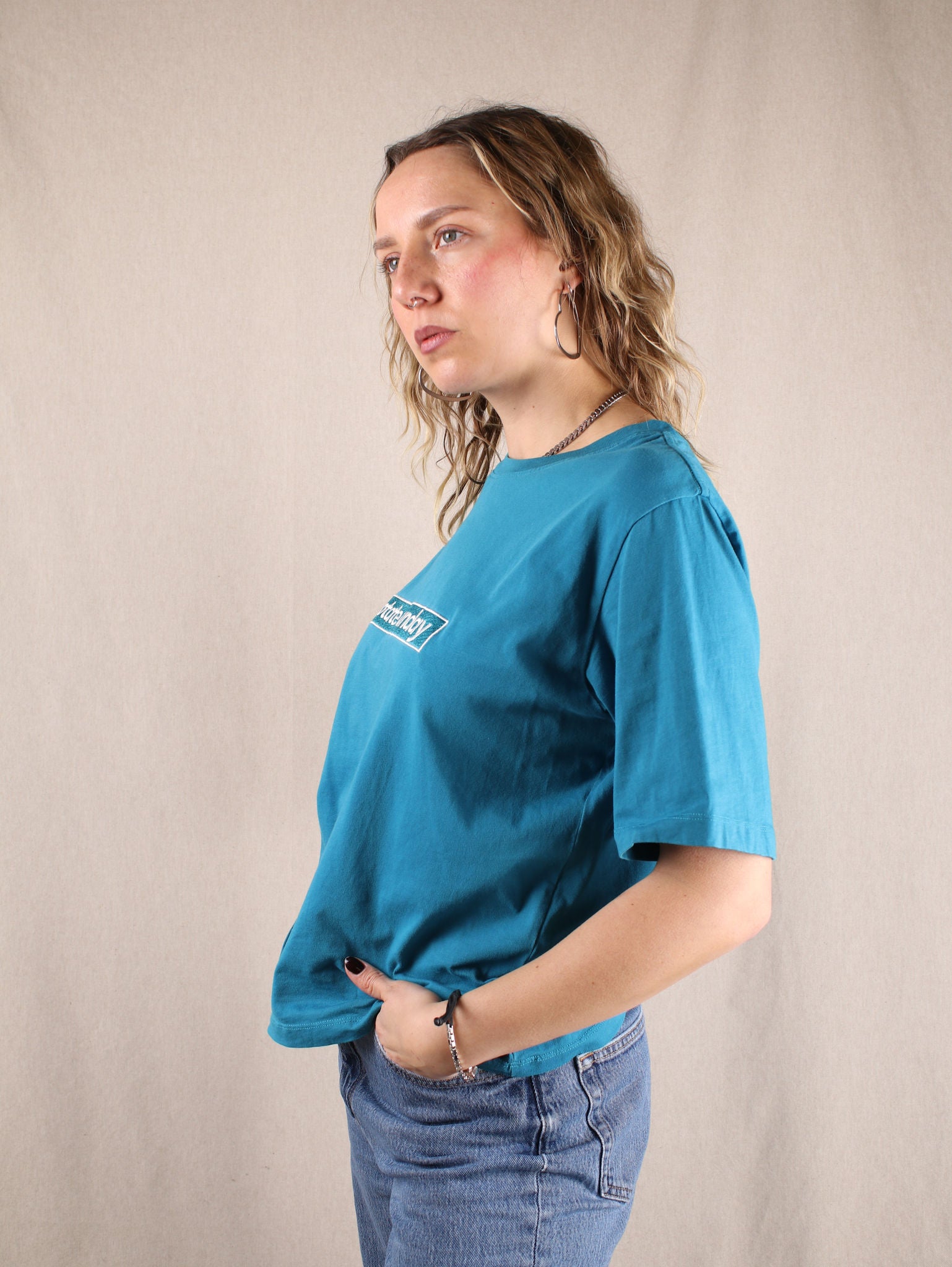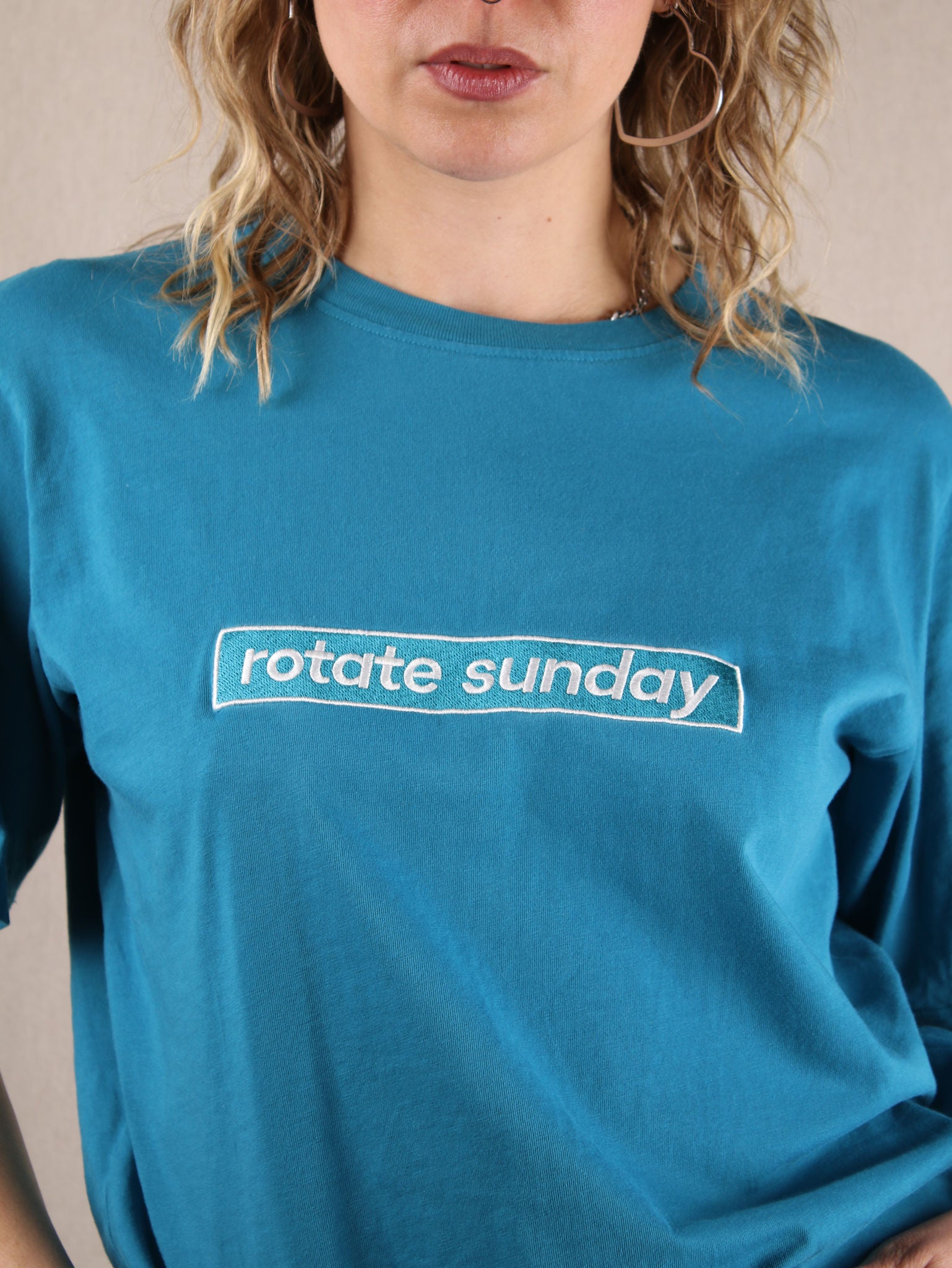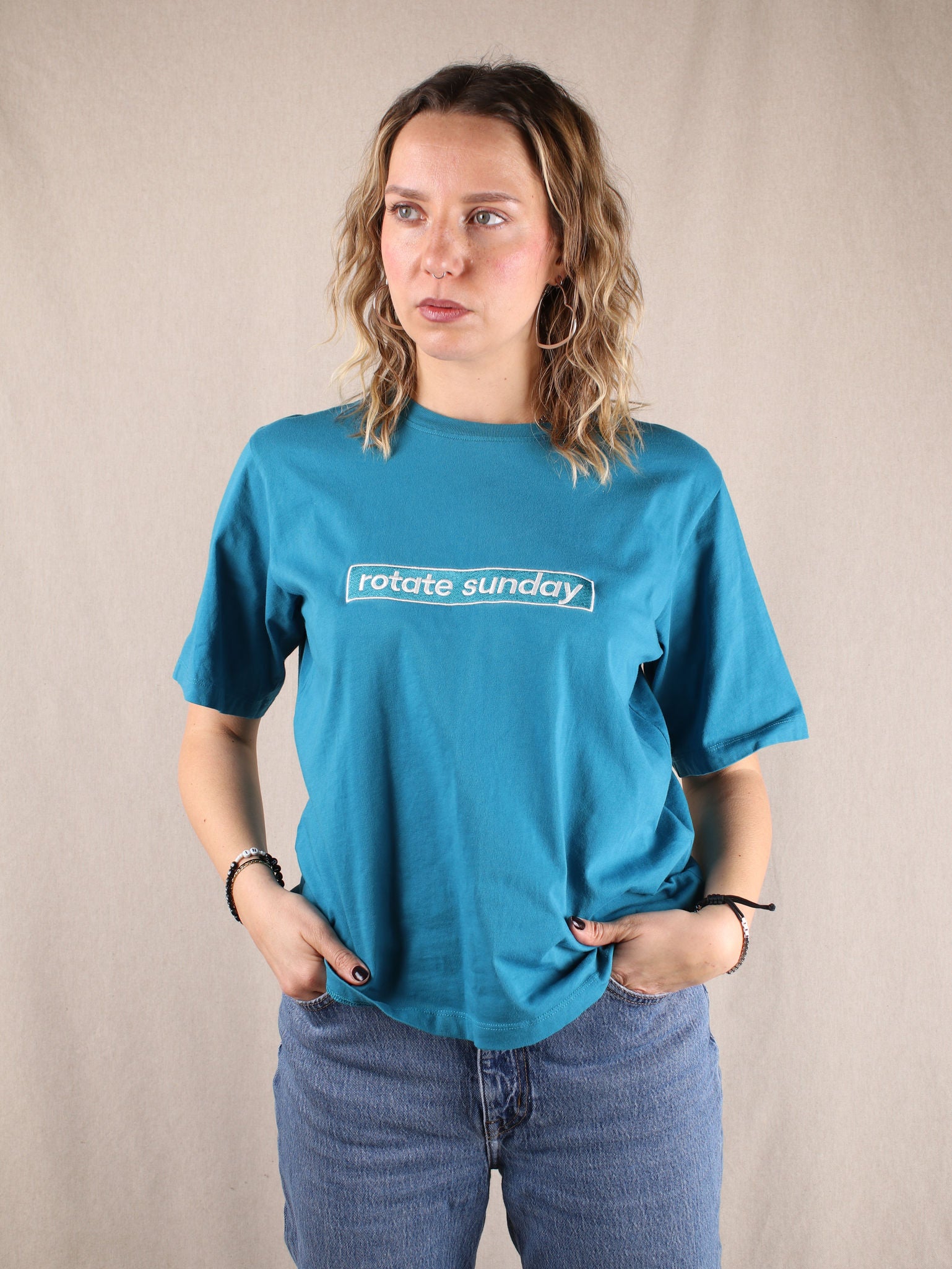 Secondhand T-Shirt mit ROTATE SUNDAY Stickerei in Petrol.