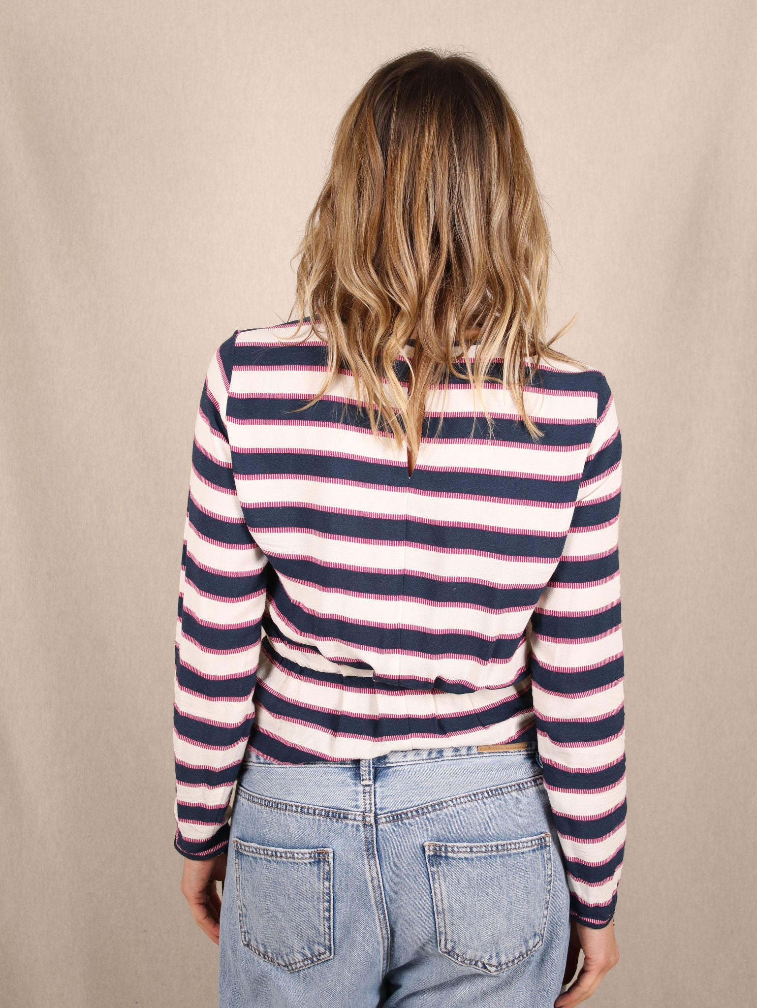 Bluse mit Streifen und Raffung