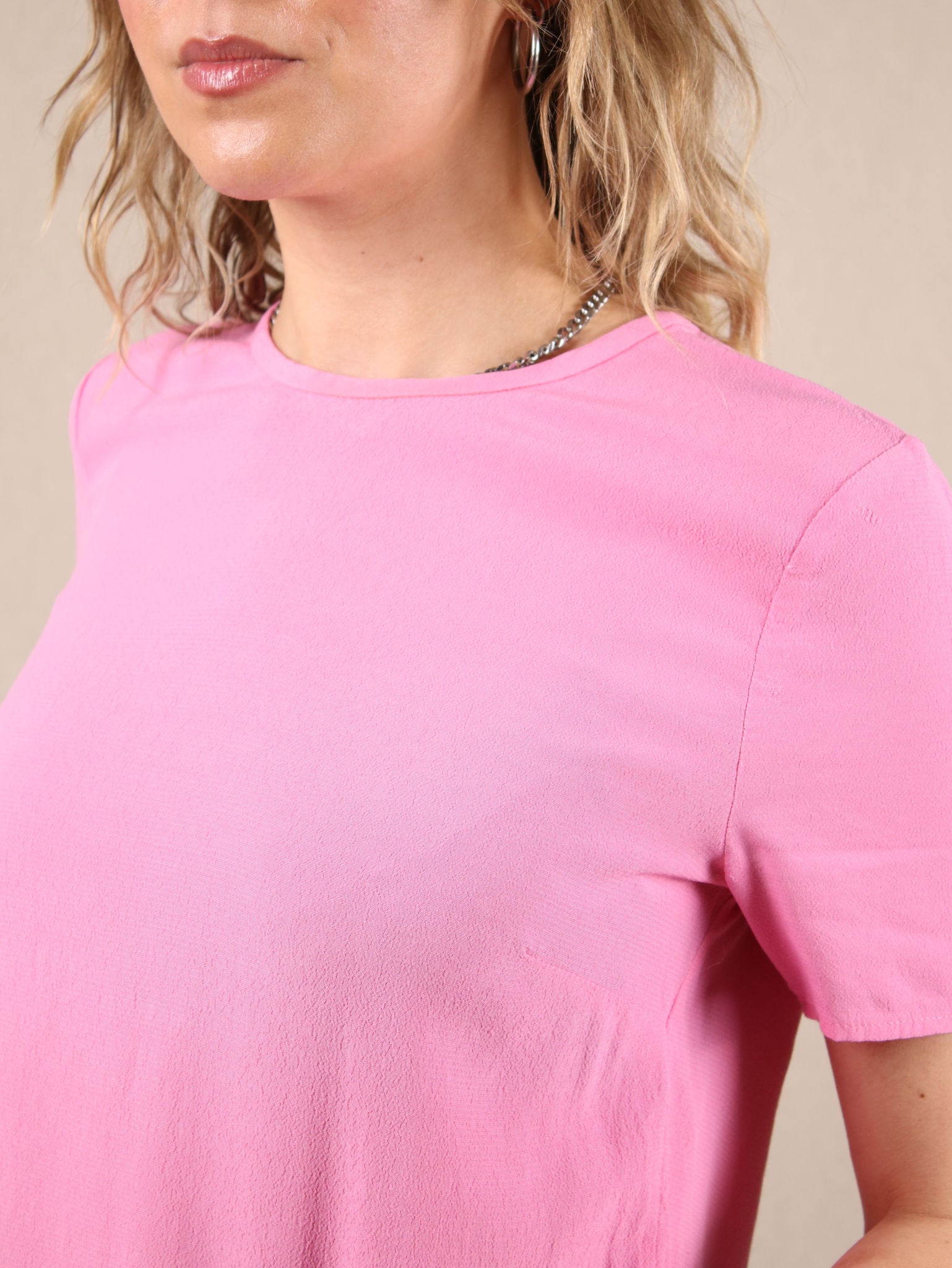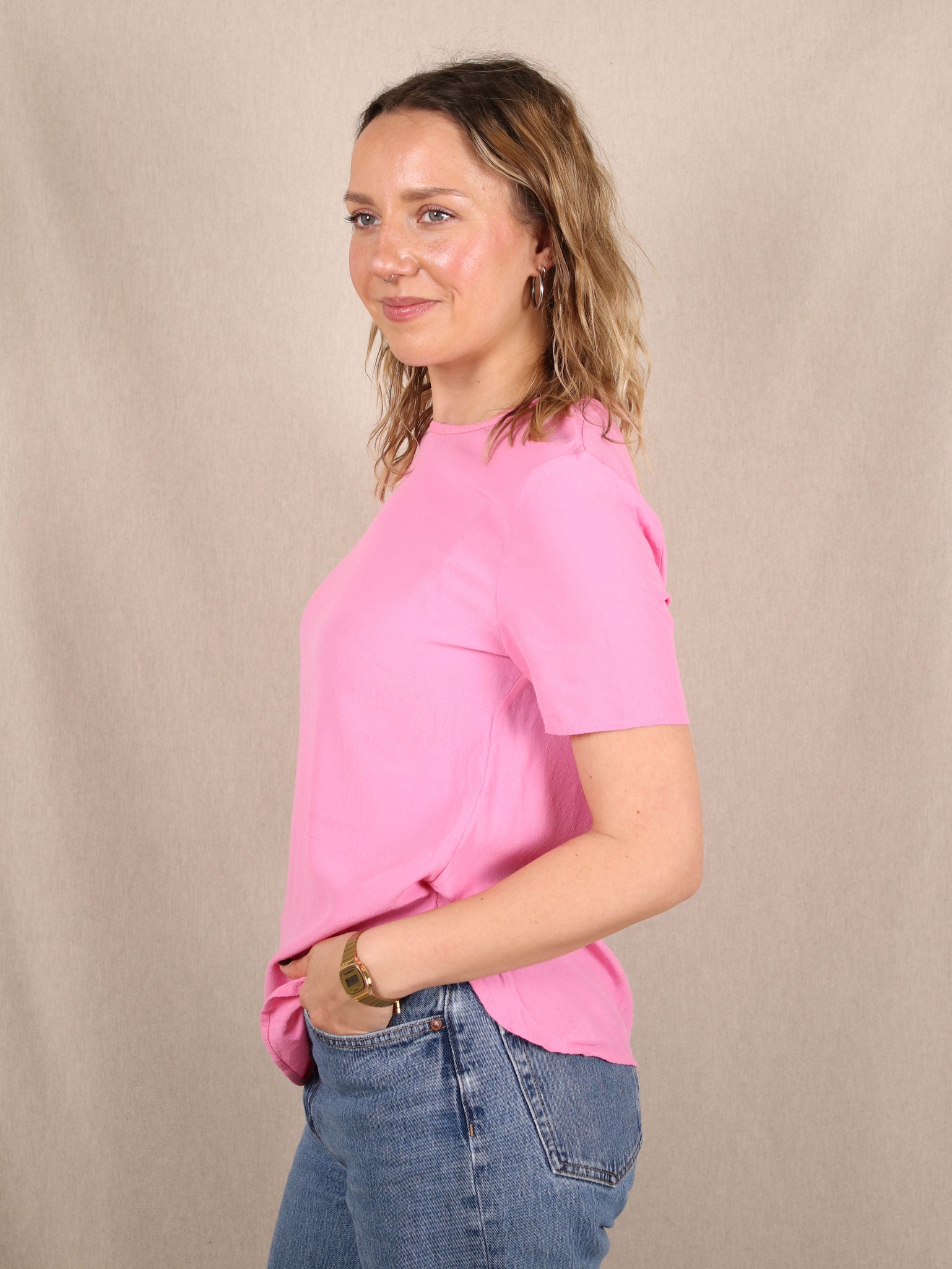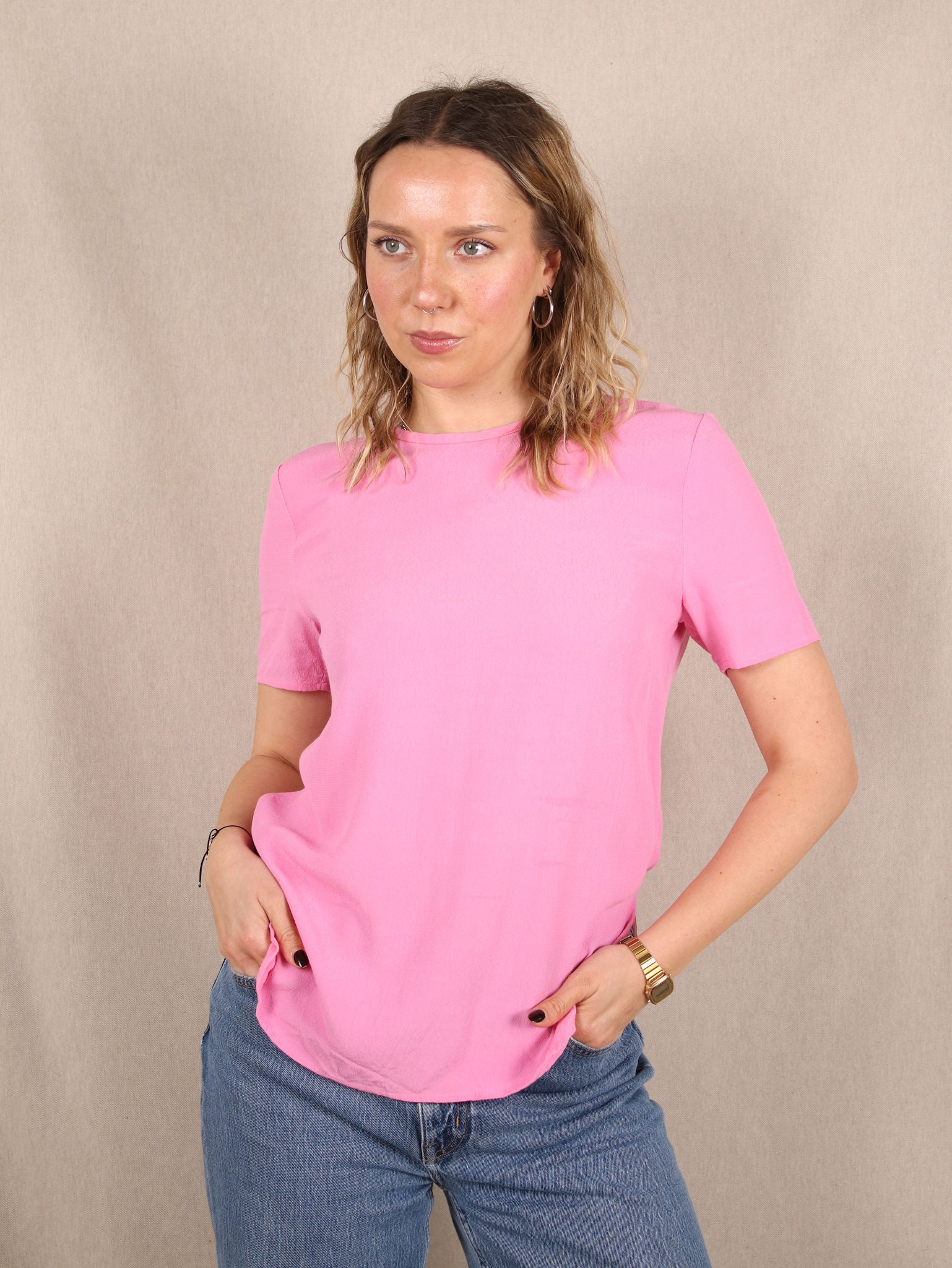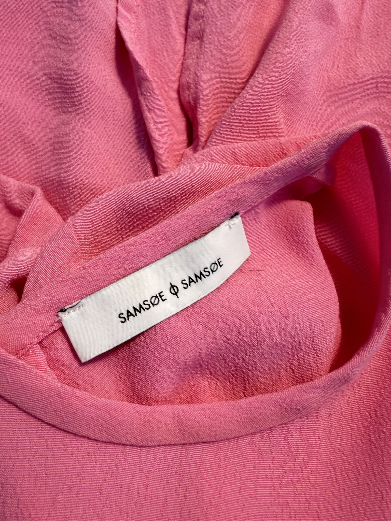 Knalliges Pink, lässiger Fit - dieses Samsøe & Samsøe Shirt in XS bringt Farbe in deinen Style. Leichter Viskose-Crepe für den perfekten Flow, ready für alles von Sneakern bis Statement-Look. Secondhand mit Charakter: kleine überdehnte Naht am Rücken, aber hey - nobody’s perfect.