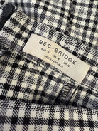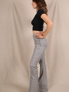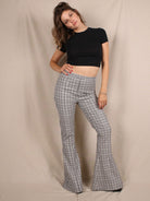 Diese schwarz-weiße Hahnentritt-Hose von BEC + BRIDGE ist ein echtes Statement – mit Flare-Schnitt, 70s-Vibes und elegantem Touch. Sie sitzt figurnah und schwingt ab dem Knie locker aus – ideal für einen modernen Retro-Look.