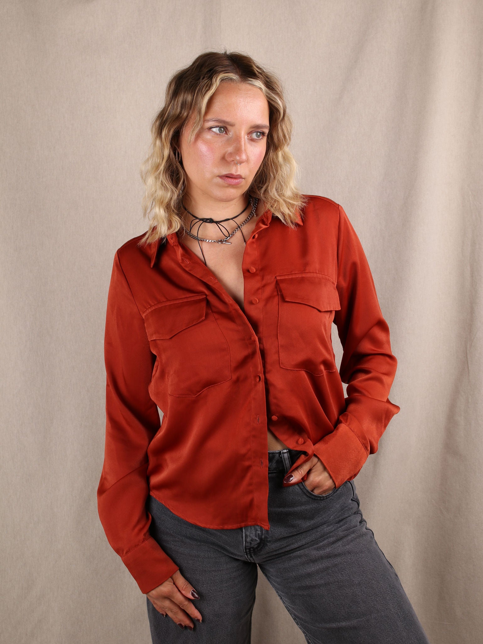 Satin-Hemd mit Taschen