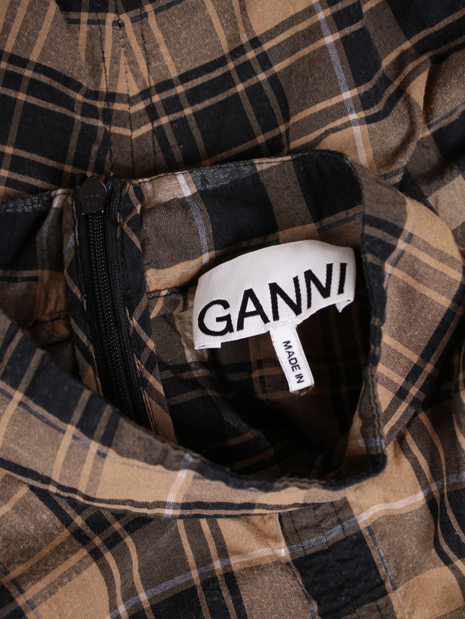 Dieses Preloved GANNI-Kleid bringt Coolness auf ein neues Level! Das markante Karomuster in Braun-Schwarz trifft auf eine figurnahe Mini-Länge und angesagte Puffärmel – ein Mix aus Brit-Vibes und Scandi-Chic. Dank der hochwertigen Baumwollmischung trägt es sich super comfy und sieht mit derben Boots oder Chunky Sneakers einfach next-level aus. Ein echtes Statement-Piece für alle, die Style mit Attitude lieben!