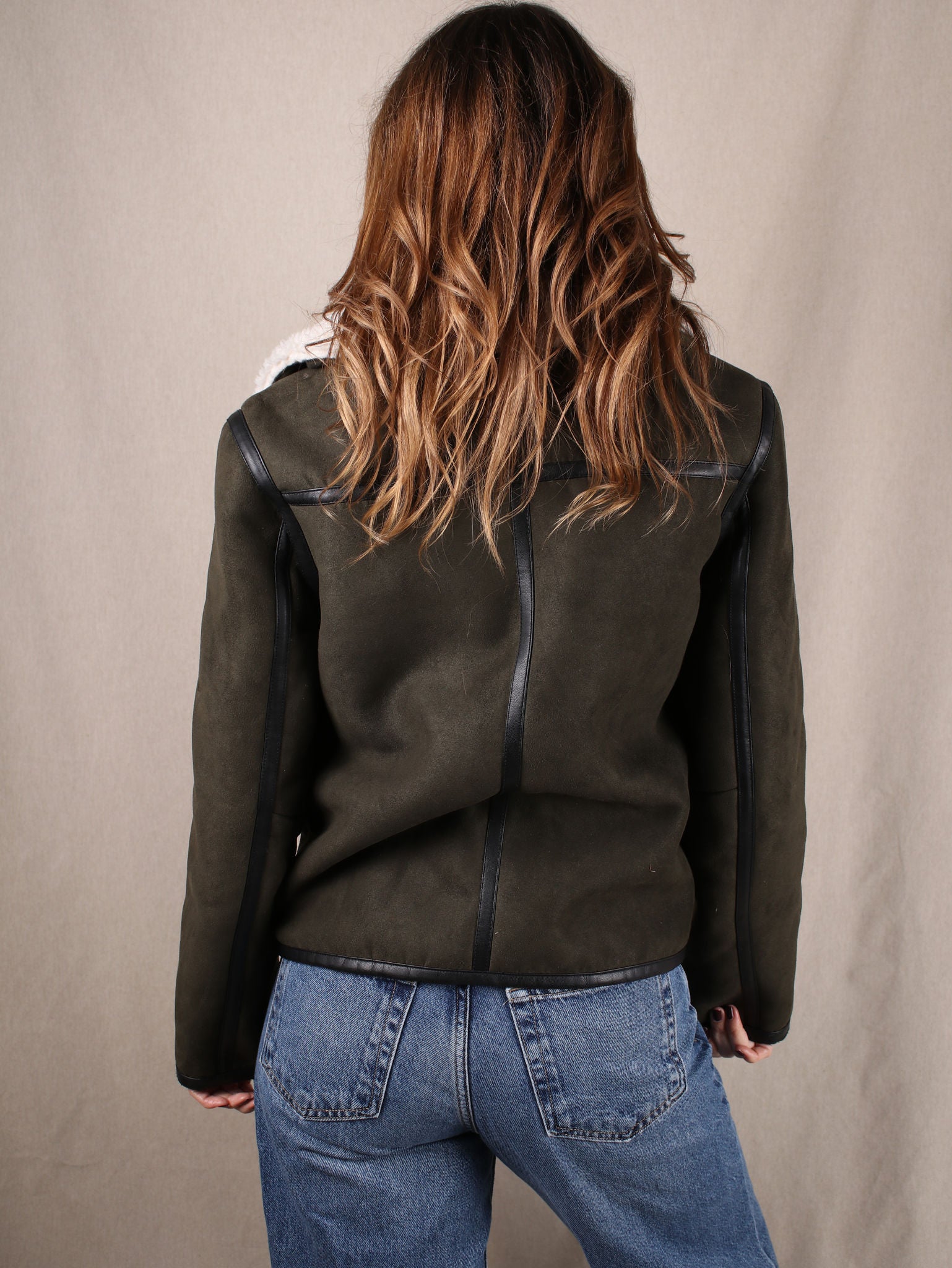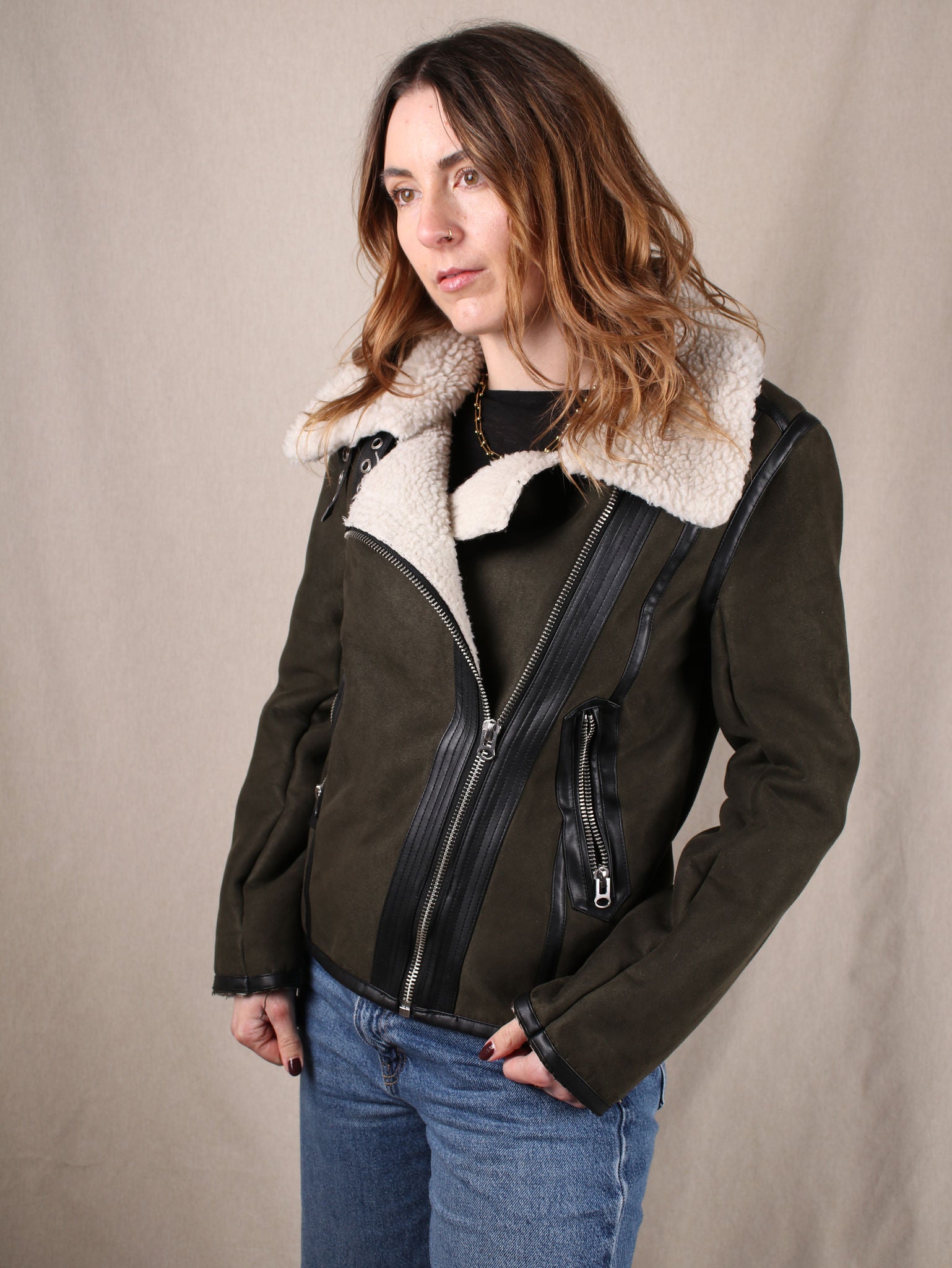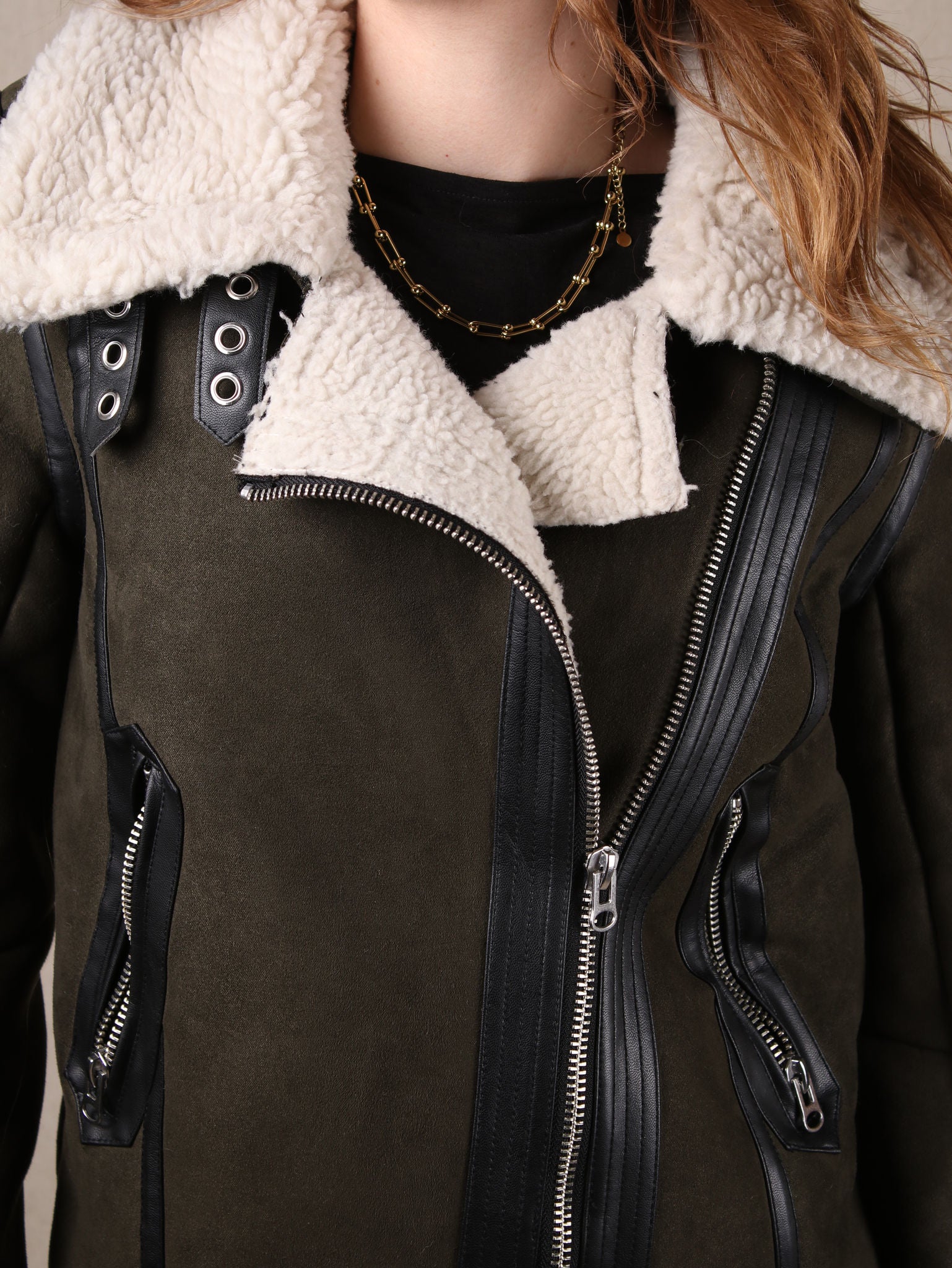 Velours-Jacke im Aviator Design mit Kunstfell-Details
