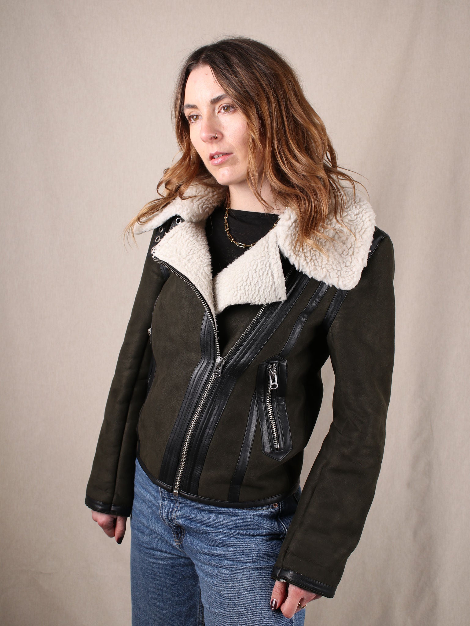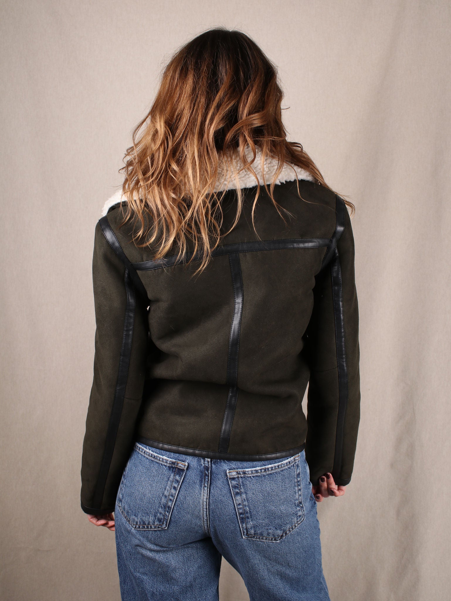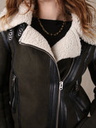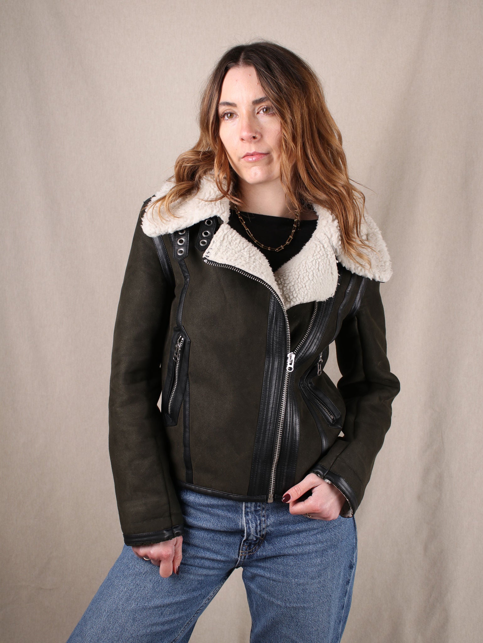 Velours-Jacke im Aviator Design mit Kunstfell-Details