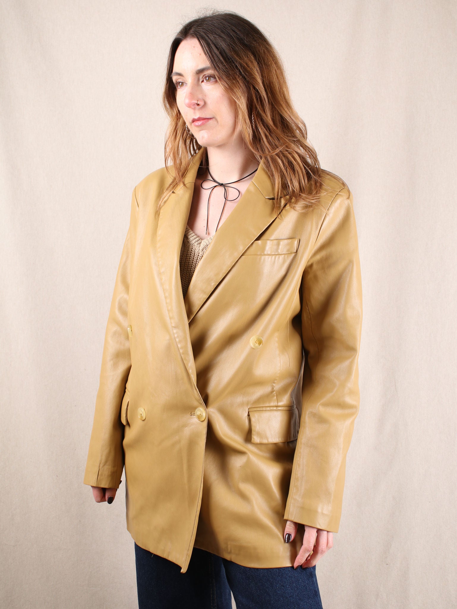 Dieser Mango Blazer in angesagtem Oversize-Schnitt bringt 90s-Flair zurück in deinen Kleiderschrank. Aus Kunstleder punktet er mit einer lässigen Passform und stilvollen doppelreihigen Knöpfen. Perfekt für den Secondhand-Liebhaber, der auf der Suche nach einem besonderen Statement-Piece ist. In Größe M erhältlich, fällt jedoch größer aus. In sehr gutem Zustand – bereit für deinen nächsten Streetstyle-Moment.