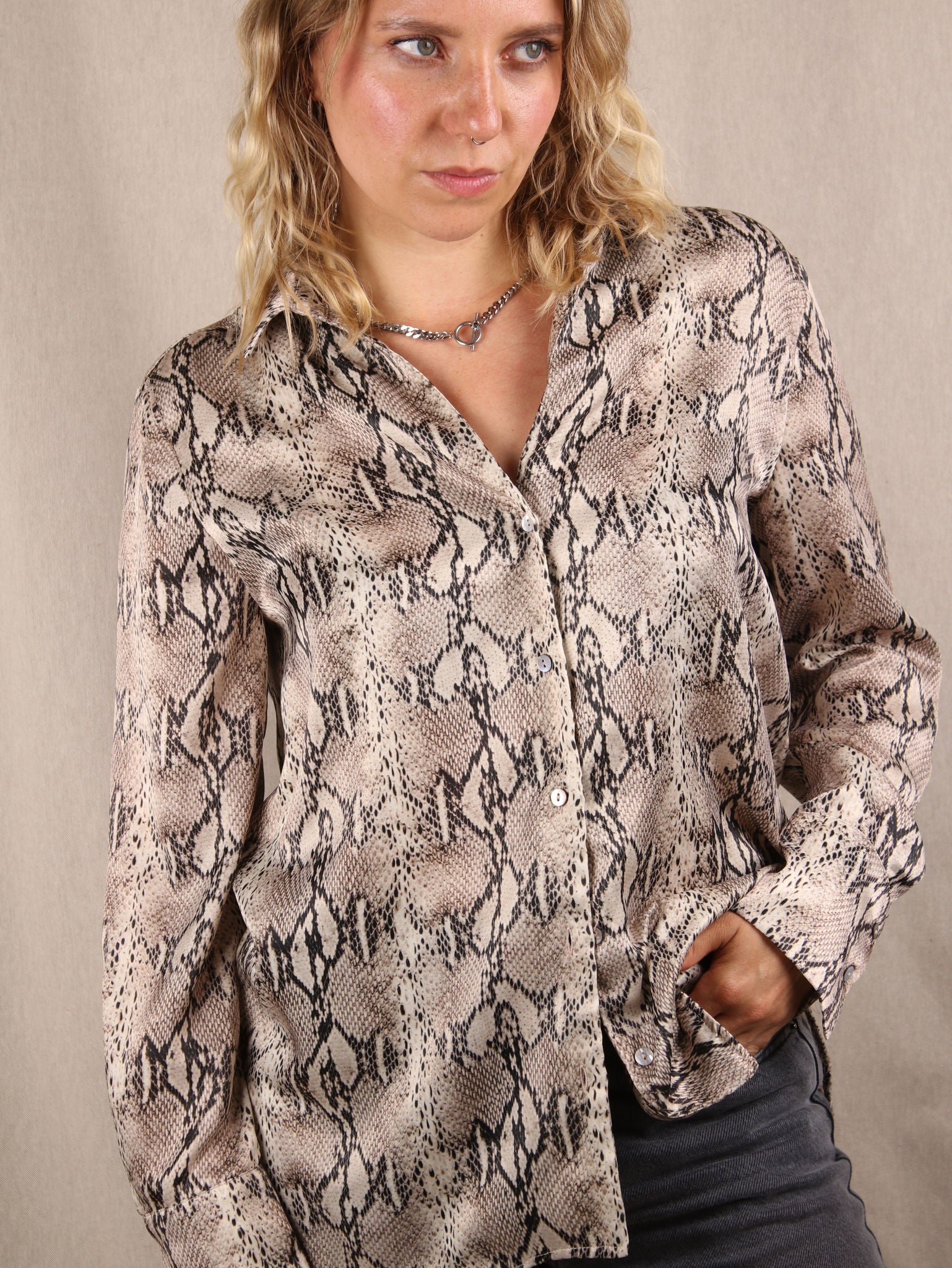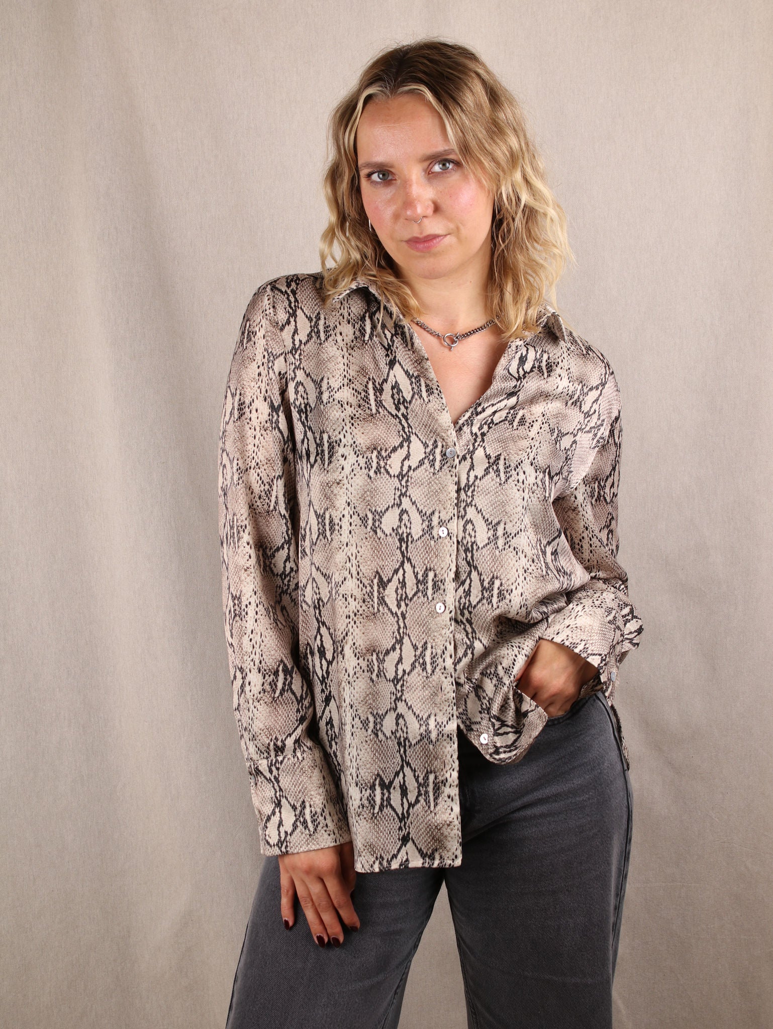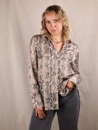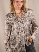 Oversize-Hemd aus Satin mit Snake-Print