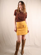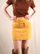 Dieser Preloved Wildlederrock von Mango bringt mit seinem ockerfarbenen Ton und den markanten aufgesetzten Taschen echte Vintage-Vibes in deine Garderobe! Der hochwertige Wildlederstoff sorgt für eine edle, weiche Haptik, während der Mini-Schnitt für einen femininen, modernen Look sorgt. Perfekt mit hohen Stiefeln für einen 70s-inspirierten Style oder mit Sneakers für einen coolen Alltagslook.