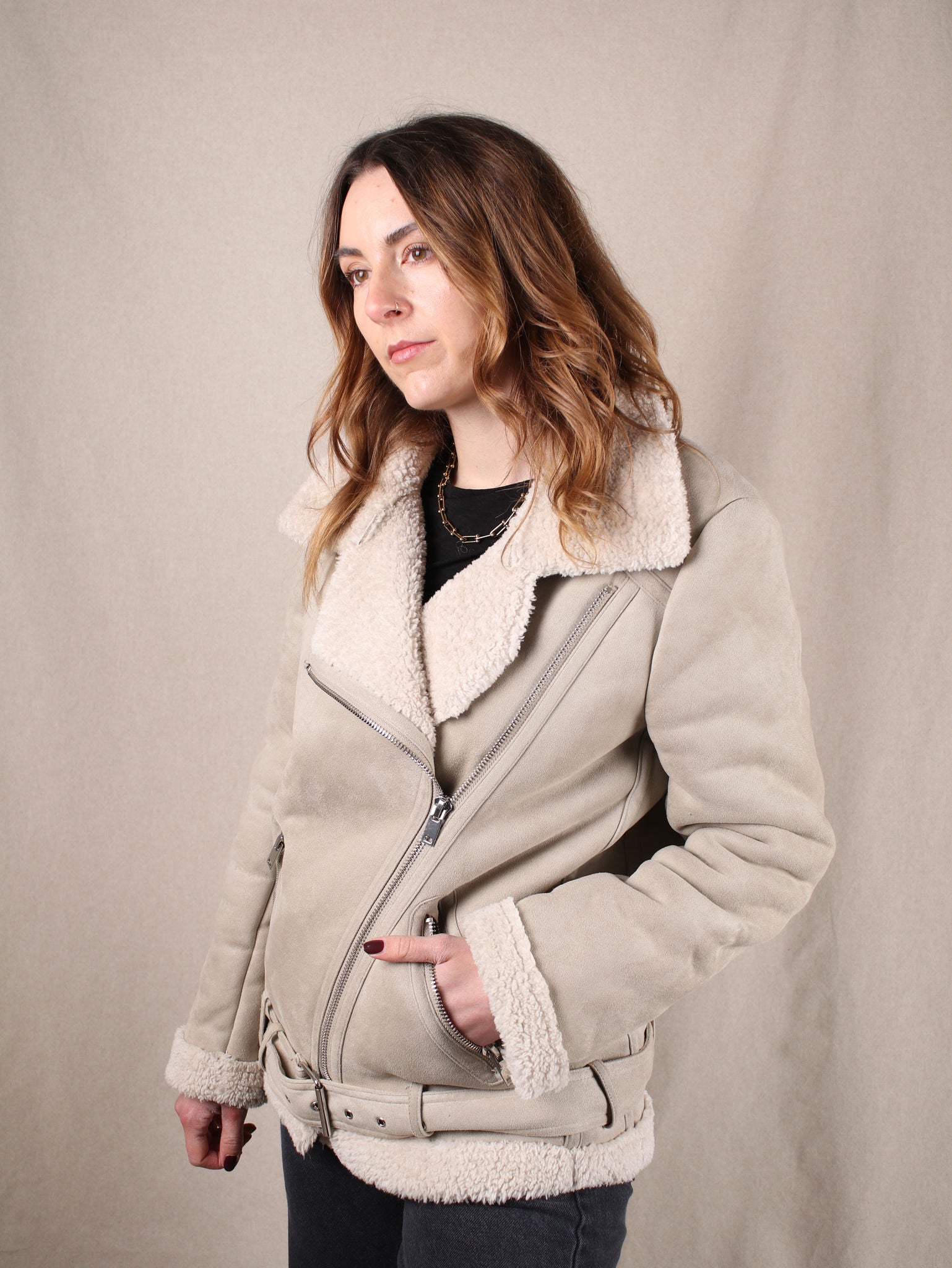 Velours-Jacke im Aviator Design mit Kunstfell-Details