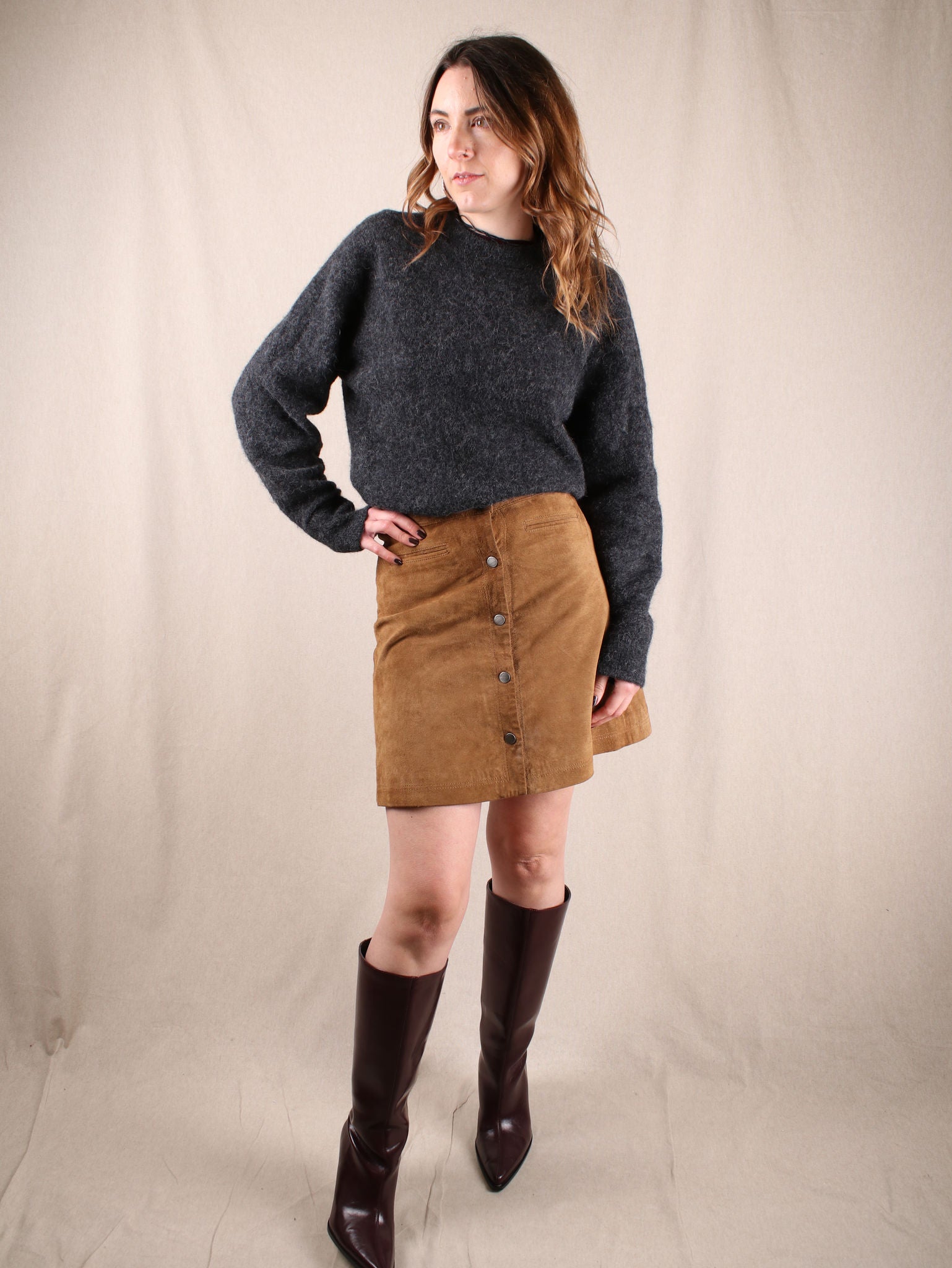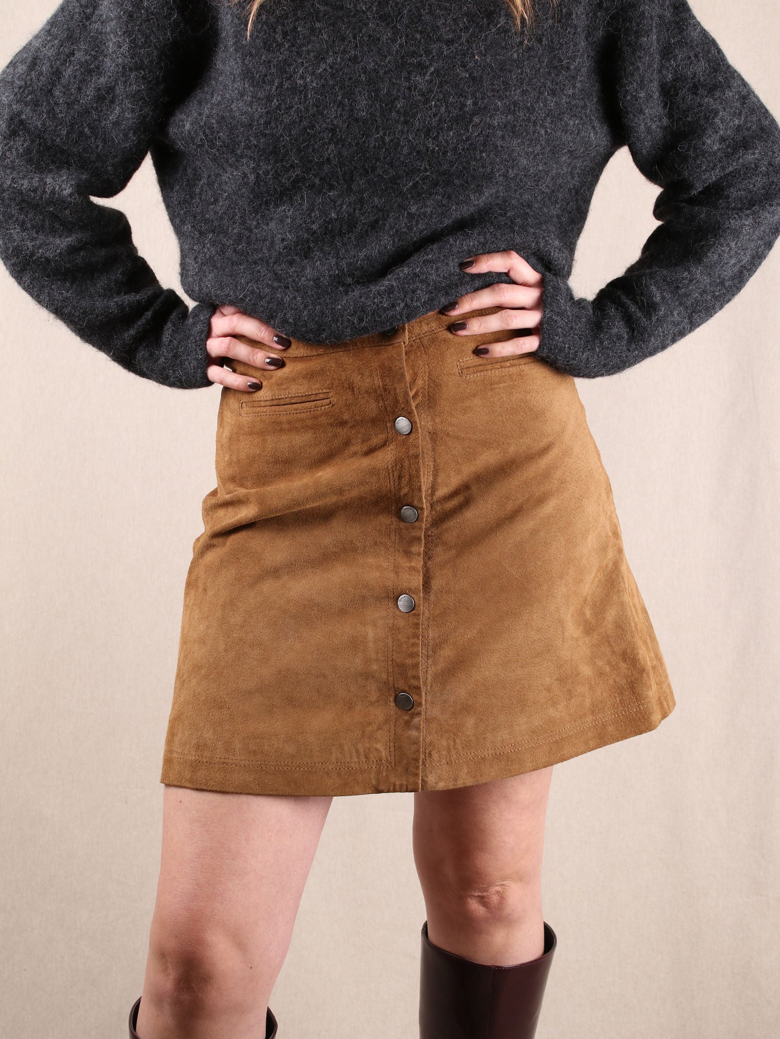 Secondhand Mini-Rock von Only aus Leder mit Druckknöpfen.